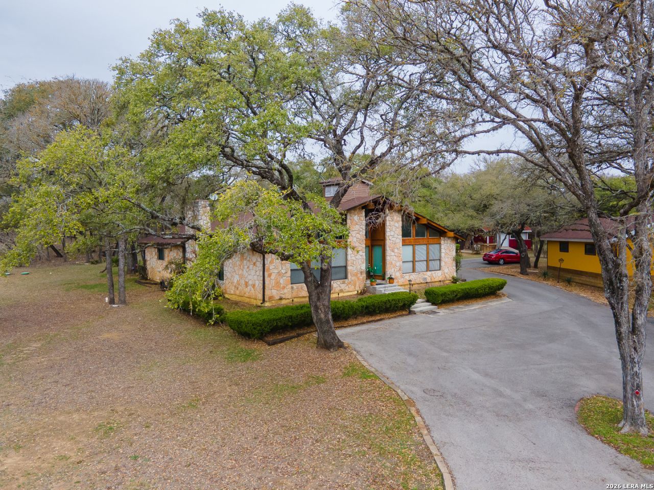 THIS IS A ONE-OF-A-KIND PROPERTY. MAIN HOME PLUS 4-PLEX WITH 4 EFFICIENCY APARTMENTS, 1 GUEST HOUSE THAT IS AN EFFICIENCY APARTMENT, PLUS EFFICIENCY IN A CONVERTED GARAGE AND AN ADDITONAL BUILDING USED FOR A GYM FOR THE COMPLEX. A TOTAL OF 7 HOMES, INCOME PRODUCING OR MULTI-GENERATIONAL COMPLEX OR GREAT FOR RETREAT OR SHORT-TERM RENTAL. THE MAIN HOME IS 2822 SF, 3 BEDROOMS, 2.5 BATHS, LARGE FOYER, CHEFS KITCHEN WITH LARGE BREAKFAST BAR ISLAND, DOUBLE OVEN, DOUBLE STAINLESS STEEL SINK, UPGRADED COUNTER TOPS AND LOTS OF CABINETS, PLUS A LARGE PANTRY. THE FOYER CAN BE USED AS A FORMAL LIVING AREA, READING ROOM OR MORE. THE LIVING ROOM HAS A BEAUTIFUL STONE FIREPLACE WITH STOVE INSERT AND MADE FOR RELAXING AT THE END OF THE DAY. HUGE FORMAL DINING ROOM ADJOINS THE KITCHEN IS MADE FOR YOUR LARGEST GATHERINGS. THERE IS EVEN A SECOND BREAKFAST BAR AT THE END OF THE KITCHEN. LARGE MASTER WITH AN ADJOINING OFFICE/SITTING AREA CAN BE CLOSED OFF FOR MORE PRIVACY TO USE AS AN OFFICE OR LEFT OPEN FOR LARGER BEDROOM. LUXURY BATH FEATURES CUSTOM WOOD VANITY WITH DOUBLE SINKS, HUGE SHOWER AND BIG CLOSET. THE OTHER TWO BEDROOMS ARE BIG AND HAVE AMPLE CLOSET SPACE. ALL THIS PLUS 6 INCOME PRODUCING HOMES ON THE PROPERTY, A BUILDING FOR A GYM, ALMOST 5 ACRES AND EVEN ACCESS TO AN UNDERGROUND CAVE. 4 OF THE 6 UNITS CURRENTLY RENTED FOR $4400.00 PER MONTH AND KEEPING 2 OPEN FOR SHOWINGS. OUTSIDE OF THE HOMES THEY FEATURE DECKS ON MOST OF THEM TO ENJOY THE QUIET PARK-LIKE SURROUNDINGS. ONLY 3.4 MILES TO TEXAS STATE UNIVERSITY SO THERE IS NEVER A LACK OF PEOPLE WANTING TO RENT THE CABINS.