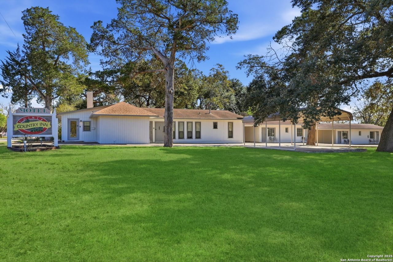 The Shiner Country Inn is a 9 room motel, with a separate 2-bedroom/full kitchen extended stay apartment. Recent updates to all rooms include fresh int/exterior paint, new flooring, newer roof, linens and on-site laundry facility in rear courtyard. There is also a microwave/coffee cart in each room. Very clean, turn-key operation. Regular clients as well as visitors in for short stays. Business opportunity includes: motel, office, 3 storage unit rentals, & half acre lot perfect to expand & add more rooms. Seller has approved permits and plans that will convey if desired by new ownership. Its the ONLY MOTEL IN SHINER and its filled with historical charm, but without the restrictions. No Known minerals currently retained by seller will convey to buyers upon sale. Showings by appointment ONLY. Confidential in nature, DO NOT DISTURB without appointment.