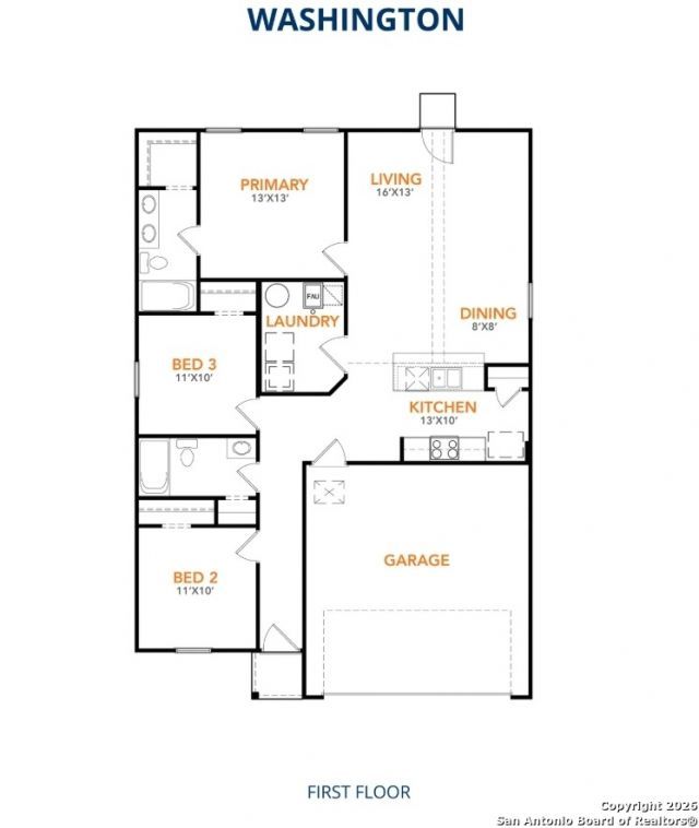 MLS# 1934663 - Built by NHC - Feb 2026 completion! ~ The Washington Plan from our Liberty Series is a thoughtfully designed single-story home featuring 3 bedrooms, 2 bathrooms, a 2-car garage, and 1,209 square feet of functional living space. As you step inside, youll find two secondary bedrooms and a full bathroom conveniently located at the front of the home. Continue into the bright and open living area, where the kitchen with a central island seamlessly overlooks the dining area and family room, creating a perfect space for everyday living and entertaining. The laundry room is thoughtfully situated off the kitchen for easy access. The primary bedroom, located at the back of the home for added privacy, features a private bathroom and a walk-in closet, providing a comfortable retreat. .