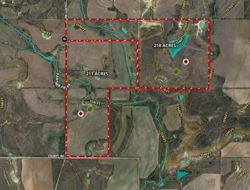 Beautiful 218 acres. The property has been improved pastures with good native brush, area enough for cattle to roam with beautiful trees and brush for hunting & fishing. A creek runs through one part. 26 acre soil conservation lake with rock dam. Stock tanks! Plenty of H2O and multiple electric locations. Additional acreage also available. Buyer and Buyer's agent to verify all information.