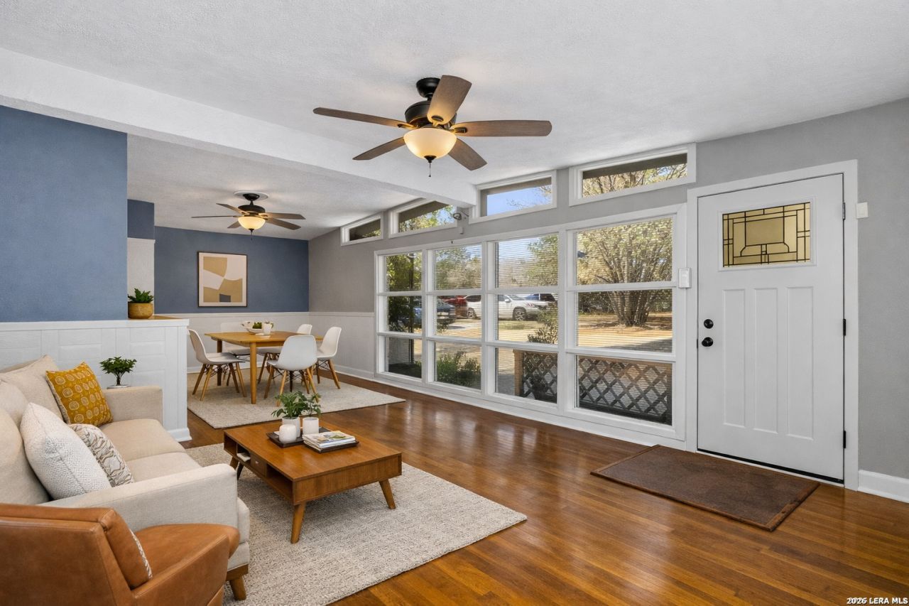 This just in! Up to $5000.00 in buyers concessions with accepted offer! Tucked beneath mature trees on a quiet street in the heart of Inspiration Hills, this thoughtfully maintained mid-century modern home captures the timeless appeal that has made the neighborhood so beloved for generations. Built in 1954, 106 Bella Vista Drive blends clean architectural lines, abundant natural light, and warm, multiple living spaces that feel both nostalgic and refreshingly livable. Large picture windows draw the outdoors in, filling the main living areas with sunshine and highlighting the homes original character. Hardwood flooring flows through much of the home, creating a cohesive, welcoming feel, while the layout offers flexibility for todays lifestyles. Two bonus spaces provide incredible versatility - ideal for a home office, creative studio, media room, or additional living area - along with exceptional storage throughout, a rare find in homes of this era. Set on an expansive lot just under a quarter acre; the backyard is a true highlight. Whether you envision gardening, gatherings, play space, or future enhancements, theres room to dream. Two separate storage sheds add even more functionality, perfect for hobbies, tools, or seasonal decor. Living in Inspiration Hills means more than just owning a home - its a lifestyle rooted in community. The neighborhoods HOA offers access to a community pool, park, playground, and pavilion, continuing a long-standing tradition of neighbors connecting, gathering, and enjoying the community. 106 Bella Vista Drive invites its next chapter and offers a rare opportunity to re-imagine while honoring its history.
