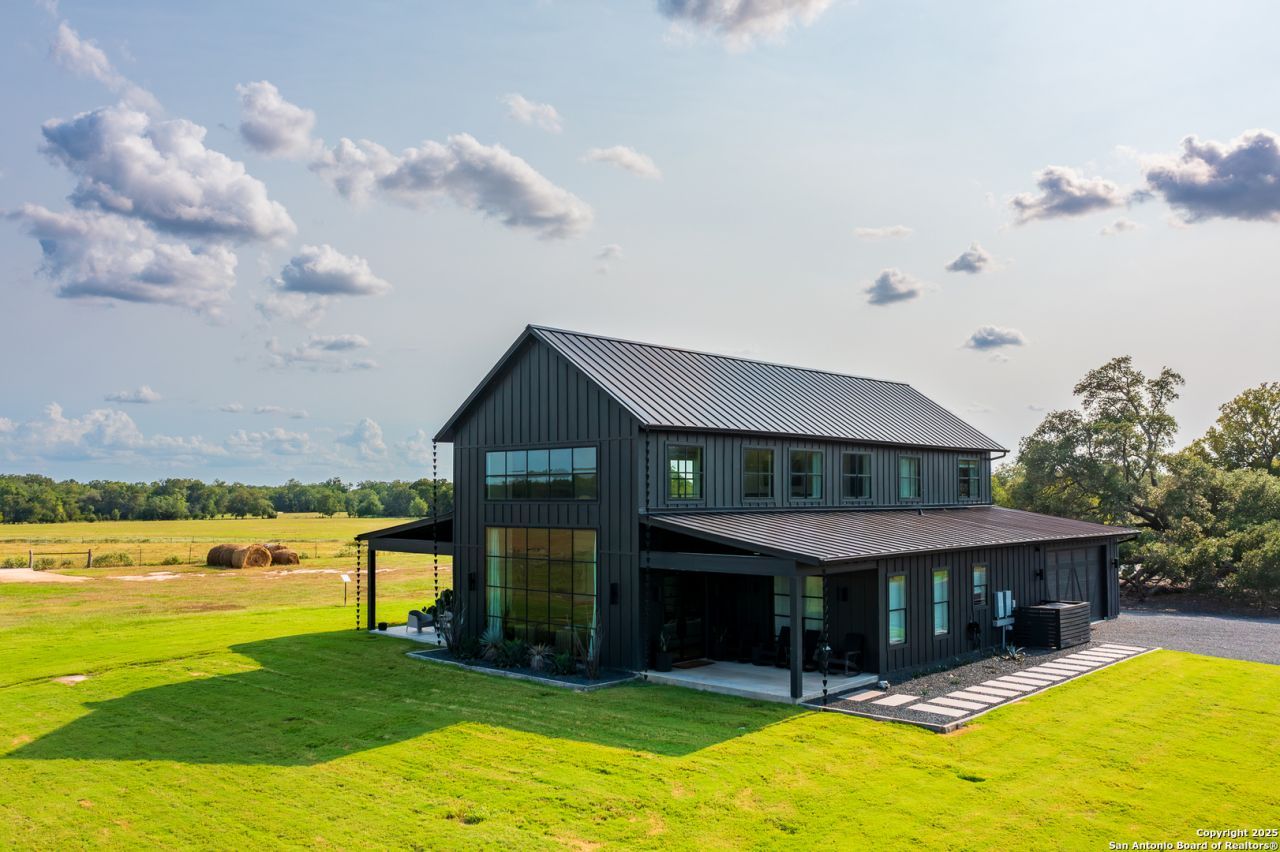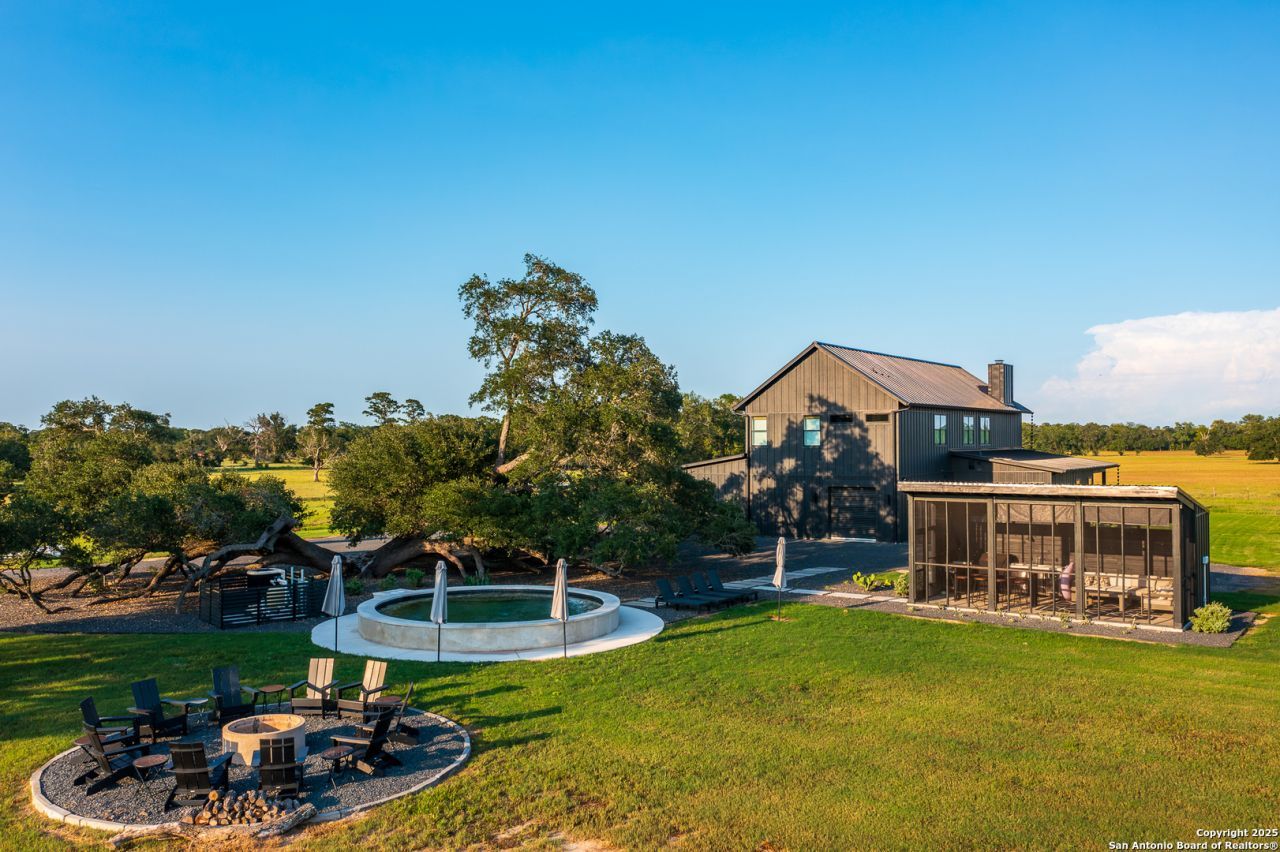 Located just 8 miles from Hallettsville, Sweet 16 Ranch spans 228 acres bordered on three sides by the Navidad River and Mixon Creek-offering a rare mix of water access, mature trees, open pastures, and well-planned improvements. The land features pecan trees, large oak motts, native brush, and a combination of irrigated, improved, and native grass pastures ideal for cattle and wildlife. The main home, completed in 2023, is a 3,465 sq ft custom build with 4 bedrooms, 4.5 baths, and an attached 1,100 sq ft garage that houses a gun closet and whole-home water filtration and softener system. A separate 1,100 sq ft guest house includes 2 bedrooms, 2 baths, and a fenced yard with low-maintenance turf. Between the two homes is a well-designed outdoor space featuring a sunken pila pool, fire pit, and enclosed cabana with a full outdoor kitchen-ideal for entertaining or relaxing. Additional improvements include a new barn with a large covered concrete pad for storing equipment, trailers, and vehicles, as well as Arrowquip working pens with a hydraulic chute and new fencing throughout. Two water wells-one drilled in 2015-have been updated with new pressure tanks and professionally serviced. The river and creek areas have been trimmed and maintained to allow for better access and use, and the property supports abundant wildlife including white-tailed deer, turkey, dove, hogs, and more.