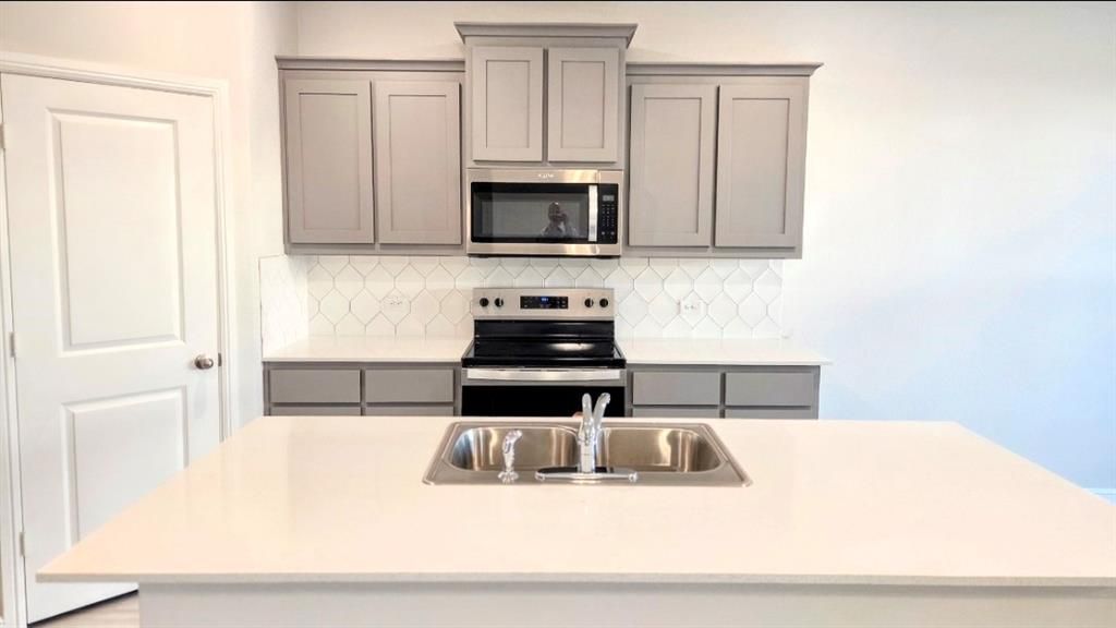 New and available for a Quick Move-in!! Gorgeous new home built by D.R. Horton at Vista Point in Grandview!! Fabulous Tupelo floorplan elevation G, Ready Now!! Single story open concept 3-bedroom home with spacious living, dining and large chef's kitchen with granite countertops, stainless steel whirlpool appliances, electric range, seating island and walk-in pantry. large primary bedroom with dual sink vanity, shower and walk-in closet. secondary bedrooms have walk-in closets. cultured marble topped bath vanities, designer package including tiled entry, hallways, living, kitchen, laundry plus home is connected smart home technology. Privacy 6-foot fenced backyard, partial gutters, landscaping package with full sod and sprinkler system. Enjoy the convenience of easy access to I-35W, allowing for a quick commute to work or weekend adventures. Community Amenities to include a dog park, a scenic mobility-friendly trail, and park with playground.