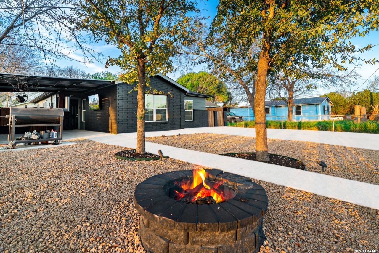 Looking for the flexibility of 4 bedrooms AND an office space with an updated open concept? This home features fresh paint with elegant epoxy and tile floors and is move-in ready. Maybe youre looking for an investment property for that long or short term rental youve been looking to add to your portfolio? Located in the Alamo Citys inner west side, this home is 9 mins from the Lackland AFB visitor gate, 15 mins west of the Alamo, and 20 mins south of the medical center area with quick access to US 90 and Hwy 151. This homes curb appeal features a gated, low-maintenance xeriscape front yard, a widened 2-car driveway, a covered outdoor entertaining area complete with dimmable led lighting, a front yard firepit, and home camera system complete with four cameras and a doorbell that conveys. Inside youll find a light filled open floorplan with a combined living/dining/kitchen area, a breakfast bar and all appliances. Epoxy flooring throughout the main living area is accented by elegant coffered and tray ceilings, recessed led lighting, ceiling fans, new paint and an outlet for your wall mounted TV. The primary bedroom features an ensuite bath with a walk in closet. The split floorplan features 3 additional bedrooms and a bonus room that is perfect for an office, den, or craft area all with tile floors. Sliding glass doors lead from the kitchen/dining area to a fully fenced backyard featuring a 10 foot decorative rear fence for added privacy. This entire house has been nicely updated and made ready for a new owner!