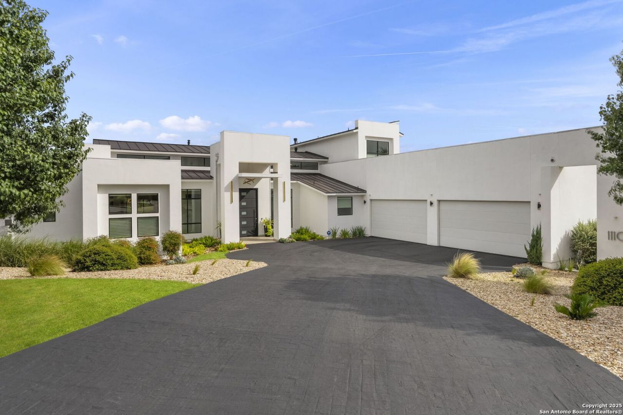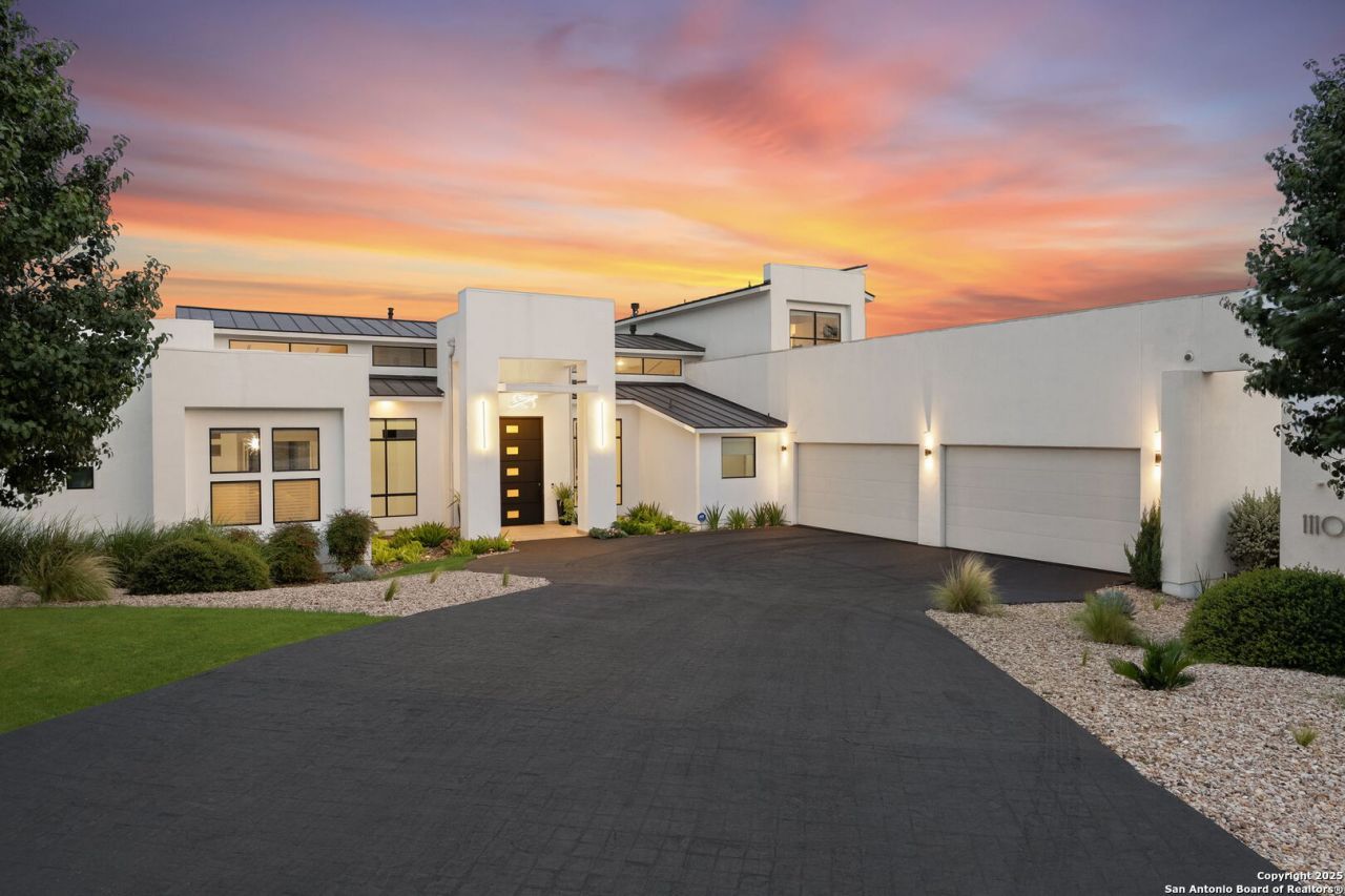 Modern Luxury in The Pinnacle One of the finest custom-designed estate by Oscar Flores in the exclusive guarded community of The Pinnacle. This 5,592 sq ft home sits on a generous 0.50 -acre lot and features an open floor plan with 5 en-suite bedrooms, 2 half baths, and luxury finishes throughout. Interior highlights include 24x48 Italian-style marble-look porcelain tiles, custom Italian cabinets, floating vanities, marble-look slabs, high-end appliances, modern ceiling design with cove lighting, floating stairs, and custom interior doors. Floor-to-ceiling windows and a corner sliding door create seamless indoor-outdoor flow. The primary suite offers a sitting area, large windows overlooking the pool, and a spa-like bath with freestanding tub, oversized shower, double vanities, and spacious walk-in closet. Outdoor living includes a large, covered patio with Cantera flooring, full outdoor kitchen, fireplace, and a zero-edge pool. A glass-enclosed wine cellar completes this timeless, modern residence. Located in one of San Antonios most sought-after luxury communities, a rare opportunity to own a beautifully designed, high-end home that blends contemporary sophistication with timeless quality.