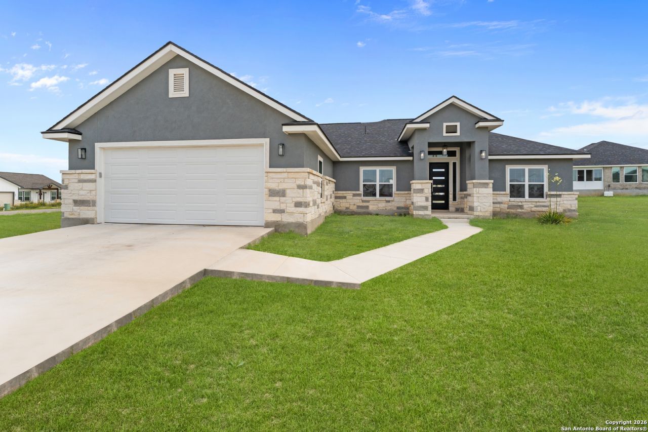 Welcome home!! This immaculate kept custom home settled on a .35-acre lot is sure to make heads turn. Step into this beauty through the custom made metal front door. There are 3 bedrooms and 2.5 baths with an office/flex room for you to use at your leisure. Very inviting large island kitchen for all of your entertaining needs, kitchen boasts beautiful quartz countertops and custom cabinetry for the extra touch of design. All rooms are a generous size, master also features not one but two walk in closets with custom build ins. Home is energy efficient with radiant barrier insulation on the roof and ridge vents, insulated garage, low E windows, and LED lights making it not only pleasing to the eye but also the electric bill. Garage opener is WIFI controlled. Home is located in highly sought after La Vernia School District. Come make this home yours today, dont wait!!