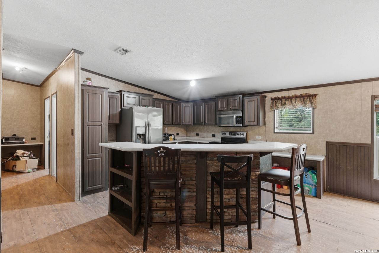 Experience country living in this spacious 4 bedroom home in Somerset set on .69 acres, offering plenty of room to spread out and enjoy a more relaxed setting. This Texas property with land provides a peaceful atmosphere while still allowing for functional everyday living. The open floor plan connects the living, dining, and kitchen areas, creating a layout that supports easy flow and flexible use of space. The kitchen features stainless steel appliances, a kitchen island, and wood cabinetry, providing a practical setup for daily use and gatherings. The primary bedroom includes a bathroom with a separate bath and shower, offering basic functionality. A dedicated laundry room adds convenience to the layout.