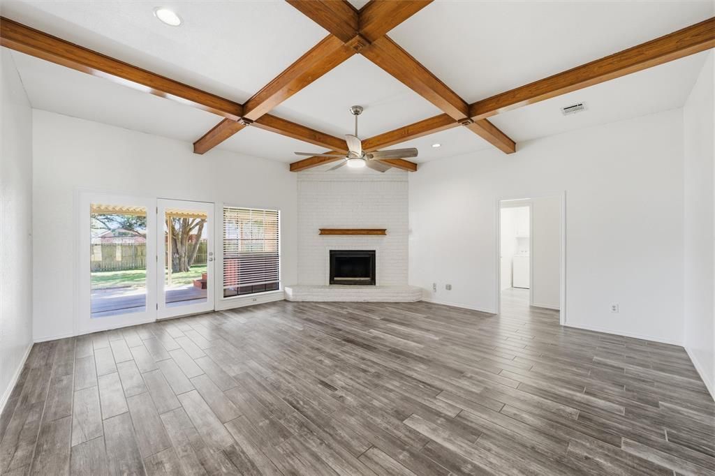 Welcome to this beautiful brick home nestled on a spacious lot in an established neighborhood with mature trees in Midway ISD. It is conveniently located just a few minutes from shopping, restaurants and Spring Valley Elementary. From the charming front sitting porch to the expansive backyard, this property offers comfort, character, and plenty of room to enjoy both indoors and out. Step inside to a large living room featuring a cozy fireplace and stunning coffered ceilings that add elegance and architectural detail. The kitchen is designed for both style and function with granite countertops and ample workspace for cooking and entertaining. The primary suite is a true retreat, offering two closets and a well-appointed bathroom complete with dual vanities, a separate shower, and a relaxing soaking tub. Secondary bedrooms are generously oversized, providing flexible space for family, guests, or a home office. Outside, the large backyard is perfect for entertaining or relaxing, featuring a covered patio with a hot tub and a brand-new shed for extra storage. The home also offers a spacious driveway and convenient side entrance for added accessibility. With its mature trees, inviting outdoor spaces, and thoughtful interior features, this Hewitt home is ready to welcome its next owners.
