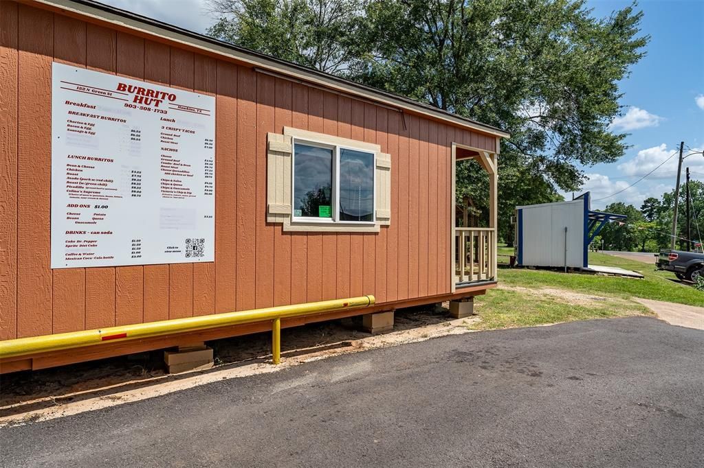 This property is 20 miles from downtown Tyler and 30 miles from downtown Longview, located one block off Highway 80 and FM 14 between Mineola and Big Sandy. According to TxDOT, the annual average daily traffic along this stretch of Highway 80 and FM 14 each day is approximately 7,000 cars, which makes this an excellent location for a business owner to capture travelers and commuters, looking for a bite to eat in a geographic area where the only other reliable option for a meal is Sonic or the closest gas station. The owners have taken meticulous care in building out this drive-thru business and summer snow-cone stand to help generate traffic and revenues in Hawkins. A new owner could also place an oversized or tall sign on the property that can be seen from the highway to also help drive business.The improvements on this lot include the 12x30 burrito business building with drive thru, and an 8x12 snow-cone building with two parking spots in front. Seller is looking to sell everything as a turn-key operation but is also open to selling the snow-cone building for relocation.This community offers tourism from nearby larger towns, like Longview, Tyler, Dallas, and even Waco and central Texas. Hawkins has a Brookshire's, Dollar General, NAPA and an ACE Hardware in the city limits and a few miles west off Highway 80 is a hidden gem: the pristine Lake Hawkins, where there is a county owned RV park and swim beach that is maintained by a private contractor who keep the beach immaculate and hoppin' in the summer. Don't miss out on the annual Fourth of July Fireworks show that go off at the dam right by the beach. Come take a look at this awesome opportunity and enjoy an affordable option to start your next business venture! Seller is open to seller financing with 25% down.