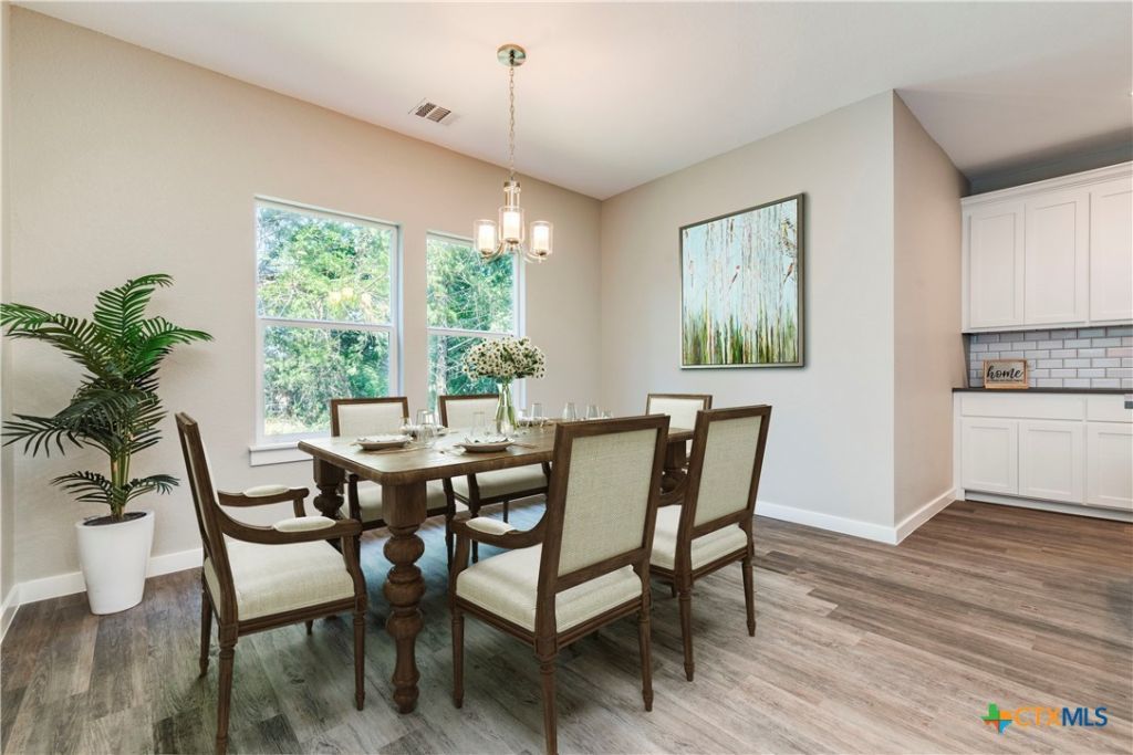 Welcome to your dream home in the coveted Tahitian Village subdivision! This stunning 2-story residence boasts 1750 square feet of meticulously designed living space, offering comfort, style, and modern amenities. As you step inside, you'll be greeted by an inviting open floorplan adorned with luxurious LVP flooring throughout the main floor. The spacious living room flows seamlessly into the kitchen and dining area, creating the perfect setting for entertaining guests or relaxing with family. The heart of the home is the contemporary kitchen, featuring sleek white cabinets, elegant granite countertops, and stainless steel appliances. A center island with a breakfast bar provides additional seating and serves as a focal point for gatherings. Adjacent to the kitchen is a convenient office nook, offering a quiet space for work or study. Upstairs, you'll find three bedrooms, including the primary suite. The primary bedroom boasts a walk-in closet and On-suite bathroom with an oversized shower, complemented by stone countertops for a touch of luxury. Step outside upstairs onto the balcony and enjoy tranquil views of the surrounding neighborhood. The outdoor space is a true oasis, with a large private backyard adorned with mature trees providing shade and serenity. Relax and unwind on the covered patio or deck, perfect for evening bbq's or simply enjoying the peaceful ambiance. Additional highlights of this home include a 2-car garage, 2.5 baths, and a layout that prioritizes privacy and comfort. Don't miss this opportunity to own a slice of paradise in the highly sought-after Tahitian Village community. Schedule your showing today and make this your forever home!