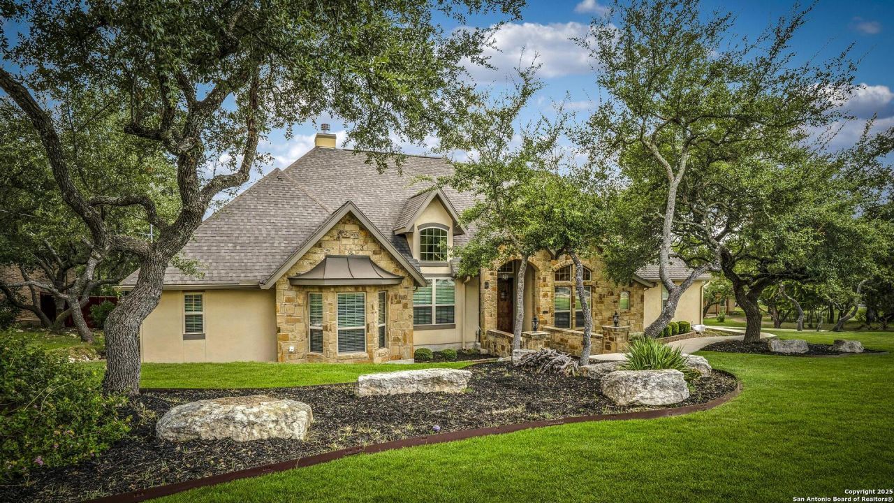Welcome to 126 Mountain Echo. This gorgeous custom home is located in the coveted neighborhood of Timberwood Park and it has a contemporary Hillcountry style. It features mostly first floor living with the media room upstairs. As you walk in you will notice the high ceilings and the expansive great room with the adjacent chefs kitchen and butlers pantry. The main bedroom features a spa like bathroom with a soaking tub, and large walk in closet. As you step outside you will be received by resort like vibes from the beautiful pool to the well manicured lawn. If you keep walking back you will encounter the Tiki bar, complete with sand and all. Truly an entertainers paradise
