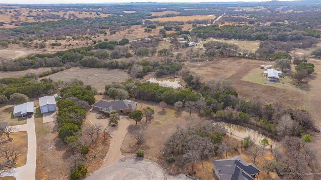 Don’t miss this exceptional Hill Country getaway situated on 2 scenic acres with a tranquil pond. This well-maintained home is designed for both comfort and entertaining, featuring an incredible outdoor living space and peaceful Texas countryside views. The expansive covered back patio offers the perfect setting for outdoor cooking, dining, and relaxing while enjoying the views. Inside, the living room showcases soaring ceilings with rustic wood beams, a gas-log fireplace, and custom built-in cabinetry. The spacious dining area captures the same picturesque views and includes a well-appointed wet bar—ideal for hosting family and friends. The kitchen provides abundant cabinet and counter space along with a built-in refrigerator, making meal preparation both functional and convenient. The home features two generously sized primary ensuite bedrooms, thoughtfully split for privacy, each with a walk-in closet and private bath. Two smaller flex rooms offer versatility for home offices, reading nooks, bunk rooms, or storage. An oversized two-car garage provides ample room for vehicles, equipment, and recreational toys. The long, private driveway leads to a beautifully landscaped circular drive, creating an impressive arrival and offering abundant guest parking. Water is supplied by a shared well with five neighboring properties at just $50 per month. Enjoy added privacy and minimal traffic with this cul-de-sac location on a dead-end road. Conveniently located in Glen Rose ISD and just minutes from Fossil Rim Wildlife Center and Dinosaur Valley State Park. Whether you’re seeking a weekend retreat, full-time residence, or family getaway, this Hill Country property delivers privacy, charm, and timeless Texas appeal.