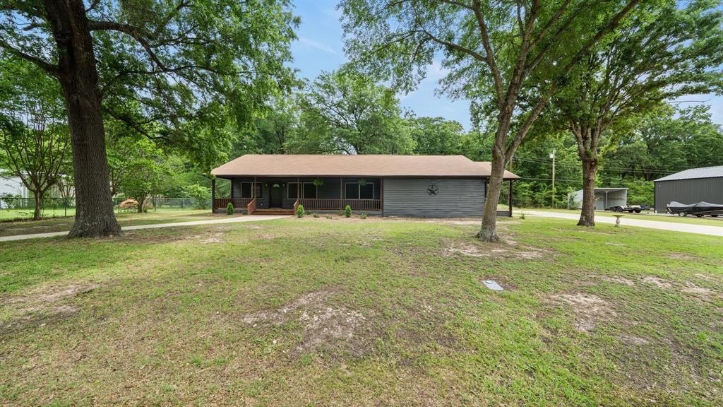 Located near Cedar Creek Lake, this beautifully updated 3-bedroom, 3.5-bathroom home offers lake views and is situated on two lots, providing additional space for outdoor use and flexibility. Each bedroom includes an ensuite bathroom, offering a functional layout for occupants and guests.The interior features an open-concept kitchen and living area designed for everyday living and gatherings. The kitchen has been fully renovated and reconfigured to create a more open and usable space. An oversized utility room offers the option for a home office, workspace, or additional storage.Recent updates completed by the current owners include foundation leveling, exterior paint, a renovated kitchen, and the addition of a half bathroom in the garage.The exterior includes multiple covered porches, mature shade trees, and a concrete driveway with space for multiple vehicles. The property is not subject to an HOA.Buyer and buyer agent to verify all information.