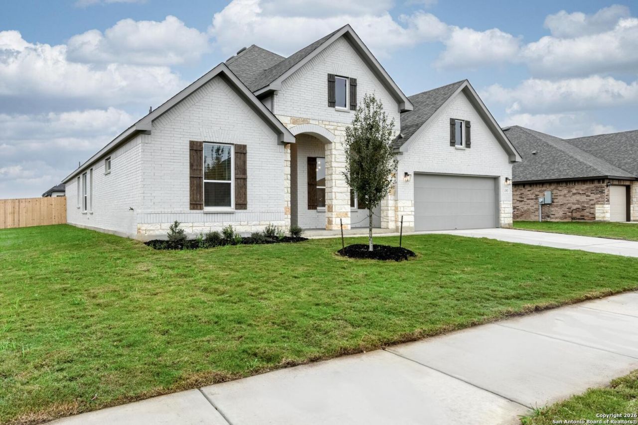 Welcome to a home where comfort, style, and functionality come together in perfect harmony. This inviting one-story design offers everything you need for both relaxed living and effortless entertaining. At the heart of the home is a gourmet kitchen, complete with quartz countertops, upgraded cabinetry, and a walk-in pantry that keeps everything beautifully organized. The kitchen flows seamlessly into the spacious family room, where large windows bathe the space in natural light and frame serene views of the backyard-ideal for quiet mornings, lively gatherings, or simply enjoying the days natural rhythm. The primary suite is thoughtfully secluded, providing a private retreat designed for relaxation and renewal. Unwind in the oversized shower, soak away the day in the garden tub, or enjoy the convenience of dual vanities and a generous walk-in closet that makes daily routines a breeze. Three additional bedrooms offer plenty of space for family, guests, or even a dedicated office. A game room adds a versatile space for fun and connection, while two additional bathrooms and a powder room make entertaining effortless and convenient. Step outside to a covered patio that extends your living space into the outdoors, complemented by a sprinkler system to keep your lawn green and welcoming all year long. Every detail of this home has been crafted to create a lifestyle that balances beauty and practicality, making it a place youll be proud to call home. This home is located in Saddlebrook Ranch, a master-planned community in the charming city of Schertz-named one of CNN/Moneys top small towns. Enjoy easy access to I-35, premier shopping, dining, and Randolph Air Force Base. Planned amenities include a sparkling pool and playground, perfect for family fun. With the highly regarded Schertz-Cibolo-Universal City School District nearby, Saddlebrook Ranch offers the ideal blend of community, convenience, and small-town charm.