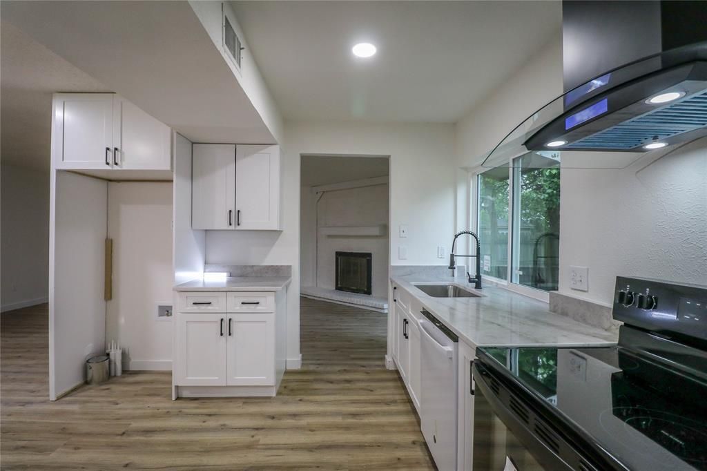 Welcome to this beautifully updated 3-bedroom, 2-bath home with a 1-car garage, nestled in the desirable Northlake Estates within Garland ISD. This thoughtfully renovated single-story residence showcases brand-new luxury vinyl flooring throughout, offering a sleek, modern aesthetic with the added benefit of no carpet anywhere in the home. Step into the expansive family room, where a cozy fireplace creates a warm and inviting atmosphere. The space flows seamlessly into the fully remodeled kitchen, featuring brand-new cabinetry, stylish countertops with an undermount sink, a modern faucet, and all-new appliances—including a stove, dishwasher, and vent hood—perfectly suited for both everyday living and entertaining. No refrigerator in the house. All furniture is from the virtual staging. Both the primary and secondary bathrooms have been completely transformed with new cabinets, granite countertops, updated sinks and faucets, contemporary hardware, and beautifully upgraded showers. Additional improvements include new windows, new light fixtures and fresh interior paint throughout, giving the home a bright, refreshed feel. Outside, the large, fenced backyard offers endless possibilities—whether you're dreaming of adding a pool, creating an outdoor oasis, or hosting memorable family gatherings. Don’t miss this incredible opportunity to own a move-in-ready home in a welcoming, family-friendly community that combines convenience with a charming small-town feel in the heart of the DFW area.