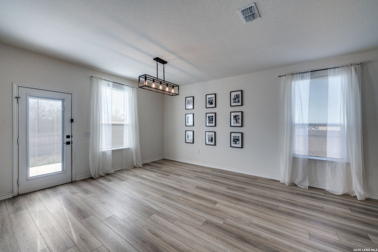 Property includes over $33,000 in builder upgrades!! Welcome to your new home in the heart of Mission Del Lago, where modern convenience meets ultimate comfort! This 3 bedroom 2.5 bathroom residence is a showcase of thoughtful design, blending high-end amenities with smart home technology for a truly exceptional living experience. As you step inside, youre greeted by impressive 9-foot ceilings and 6-foot windows that flood the home with natural light, enhancing its open and airy feel. Every room is equipped with stylish, updated fixtures, including elegant chandeliers and ceiling fans, adding a refined touch to each space. The heart of this home is the spacious kitchen, designed for both culinary adventures and casual gatherings. Featuring an oversized walk-in pantry with automatic overhead lighting. The kitchen is as functional as it is inviting with the abundant cabinetry and modern appliances. Just steps up to the second level, the expansive loft area serves as a premium entertainment hub, complete with a projector screen - perfect for hosting movie nights or watching the big game. Each bedroom is designed as a personal retreat, with ample space and large walk-in closets that offer both convenience and style. Step through French doors to the primary suite as it is a standout feature in this home with a spacious layout, a luxurious bathroom oasis that includes a vanity, and elegant finishes that create a spa-like atmosphere for your daily rituals. This home is packed with smart technology to make life easier. A smart thermostat and garage door opener controlled by dedicated apps allow you to manage home functions with a tap of your phone. Exterior lighting features an automatic on/off system, so you never have to worry about outdoor lighting again. The home is also pre-plumbed for a water softener, adding convenience for the day you decide to install a water softener. Safety and security are prioritized with the neighborhood safety camera/monitoring system, Flock Security, giving you peace of mind while at home or away. Gutters enhance the homes exterior, helping maintain landscaping and manage rainwater efficiently. Beyond the walls of your home, Mission Del Lago offers a wealth of community amenities that elevate the lifestyle. Enjoy access to a beautiful clubhouse with a large pool for socializing and relaxation. For outdoor enthusiasts, the home is situated within walking distance of the Alamo City Golf Trail, Jim Mattox Park, and the popular Rockin G Grill, making it easy to enjoy recreation and dining near by. This residence perfectly combines luxury, technology, and convenience. Schedule your tour today to see firsthand the lifestyle and amenities that await you in this beautiful home! Features/Amenities List: 9ft Ceilings, 6ft Windows, Smart Home HVAC & Garage Door Opener Apps, Doorbell Camera, Washer/Dryer/Refrigerator Included, New Fixtures - Updated Modern Fans & Chandeliers, Automatic Lighting in Pantry, T