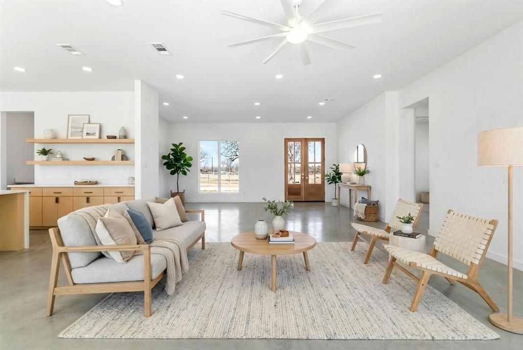Set on 11.5+-AC in the heart of horse country, this 2024 modern farmhouse exudes quiet luxury & intentional design. Spanning 3,229SF, the 5 bedroom, 3.5-bath residence pairs clean architectural lines with warm, organic textures. A light-filled open-concept layout is framed by expansive windows that capture gorgeous pasture views & flood the interiors with natural light. Ten-foot ceilings, level 4 smooth wall finishes, & a refined material palette create an atmosphere that feels both sophisticated & effortlessly livable. The kitchen flows seamlessly into the living and dining spaces, designed for elegant entertaining yet perfect for everyday comfort. Thoughtfully constructed for longevity and efficiency, the home features full spray-foam insulation, a trench-and-pier slab with post-tension reinforcement, and a Class IV standing seam metal roof offering architectural distinction and potential insurance savings. The Hardie board-and-batten exterior delivers timeless appeal with minimal maintenance, while oversized glass doors blur the line between indoors & out. Beyond the home, the acreage unfolds with cross-fenced pastures, new top-rail pipe fencing with 5’ no-climb wire, an access-controlled gated entrance, & water lines and spigots to the pastures. A spray-foam insulated 30’x40’ shop, barn, loafing sheds, provide both beauty & function. Ideally positioned just minutes from Whitesboro with convenient access to I-35, approximately one hour to Fort Worth & within reach of DFW International Airport, the property offers the rare balance of rural serenity and metropolitan accessibility. Weekends can be spent boating on Lake Texoma or enjoying the recreation of Lake Ray Roberts—both just a short drive away—while returning home to privacy & refined ranch living. Whether envisioned as a country retreat or working ranchette, this property offers modern ranch living. 4+-AC available for $919.000. Please note the backyard is a virtual rendering.