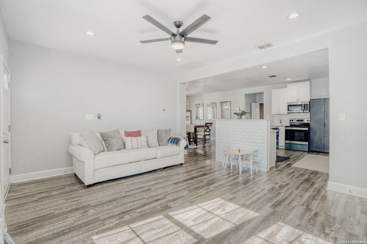 This 100-year-old corner-lot home, just a short walk to Woodlawn Park, offers a rare opportunity: two separate homes on one property, ideal for multi-generational living or rental income. The main house features 4 spacious bedrooms and 2 full bathrooms with thoughtful modern upgrades. Each room is filled with natural light, complete with remote-control ceiling fans and ample closet space. Vinyl flooring flows throughout the living areas, while the bathrooms are finished in elegant tile. The kitchen is a chefs delight with granite countertops, stainless steel appliances, abundant cabinet storage, and a dedicated dining area. The primary suite is a true retreat, featuring dual vanities, a walk-in shower, a generous walk-in closet, and French doors opening to a wooden deck overlooking the detached casita. A covered side porch offers a serene spot for morning coffee. Efficient comfort is ensured with central heating and cooling and a tankless water heater. A covered walkway connects to the detached casita (approx. 850 sq. ft.), offering vinyl flooring, a kitchenette, living area, utility room, one bedroom, a full bathroom with tile, and a walk-in closet. Mini-split systems provide climate control for year-round comfort. The fully gated yard provides plenty of space for outdoor activities, pets, and children, along with gated parking for both homes. Two-unit properties in Woodlawn are extremely rare-dont miss this opportunity! Schedule your showing today.
