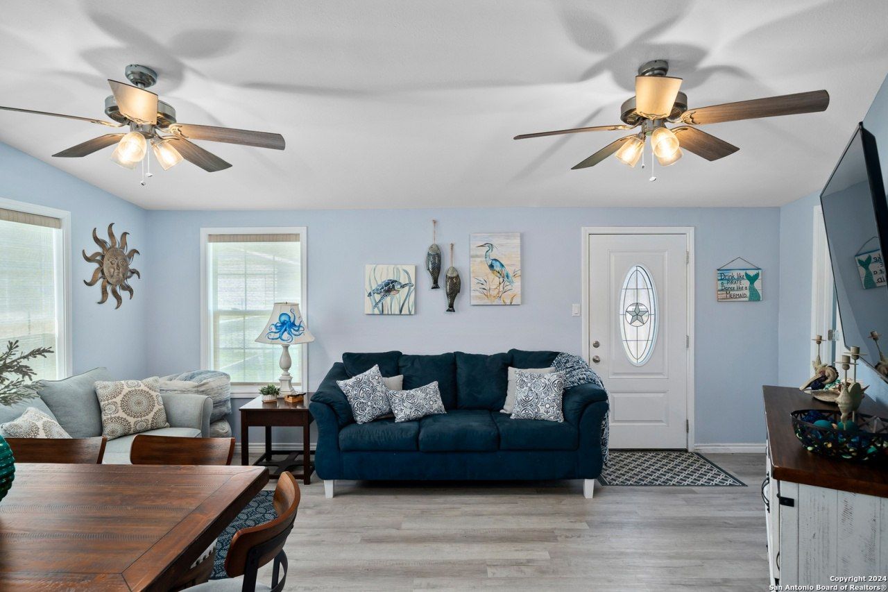 Beautifully remodeled and fully furnished home ready for new owners! Enjoy this coastal home yourself or use for income as a rental or AirBNB. Inside you are greeted with an elegant beach theme of blues and white. The living room includes a sofa, loveseat, media console with wall-mounted TV above, and a 6-chair dining table. There are three well appointed bedrooms. The primary bedroom is furnished with matching king bed, chest of drawers and nightstands. A sliding barn door leads you to the ensuite with two vanities and a large standup shower with glass door. The next bedroom has a queen bed, and the third has a twin over queen bunkbed. The second bath has a standup shower with glass door. In the bright kitchen, enjoy food prepping on the expansive solid countertop while overlooking the living room. The kitchen is equipped with stainless steel appliances, custom white cabinets, walk-in pantry and pretty blue tile backsplash. The home sits on a quarter acre+/- with multiple concrete driveways: 30x30+/- pad in front of the house and an 80+/- long drive on the side perfect for boats, an RV or other vehicles, and the yard is fully fenced. Just 2.5 miles to the Conn Brown Harbor and less than a mile to the Aransas Pass Public Boat Ramp. Its a perfect location!