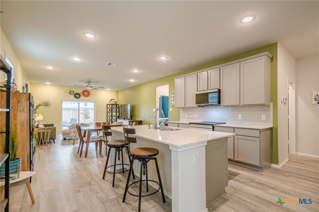 Welcome to 1418 Prynne Street in New Braunfels, an immaculately maintained home thats truly better than new and completely move in ready! This 4 bedroom, 2.5 bath home features the primary suite on the main floor along with an open living, dining, and kitchen area that is perfect for everyday living and entertaining. The kitchen is a standout with upgraded smart appliances including an induction range, microwave, and dishwasher, sleek cabinetry, and a large island that anchors the space. Throughout the home you will notice plantation shutters, modern finishes, and a light, bright feel. Upstairs offers additional space with a large game room that works great as a second living area, media room, or playroom. The backyard is ready to enjoy with a covered patio, upgraded landscaping, and full gutters already installed, adding both convenience and value. NBISD! Walkable distance to new elementary and Long Creek HS. If you are looking for a home that is still new and already has the upgrades done, this one checks the boxes. Thoughtfully cared for and completely turnkey, 1418 Prynne St is ready for its next owner!