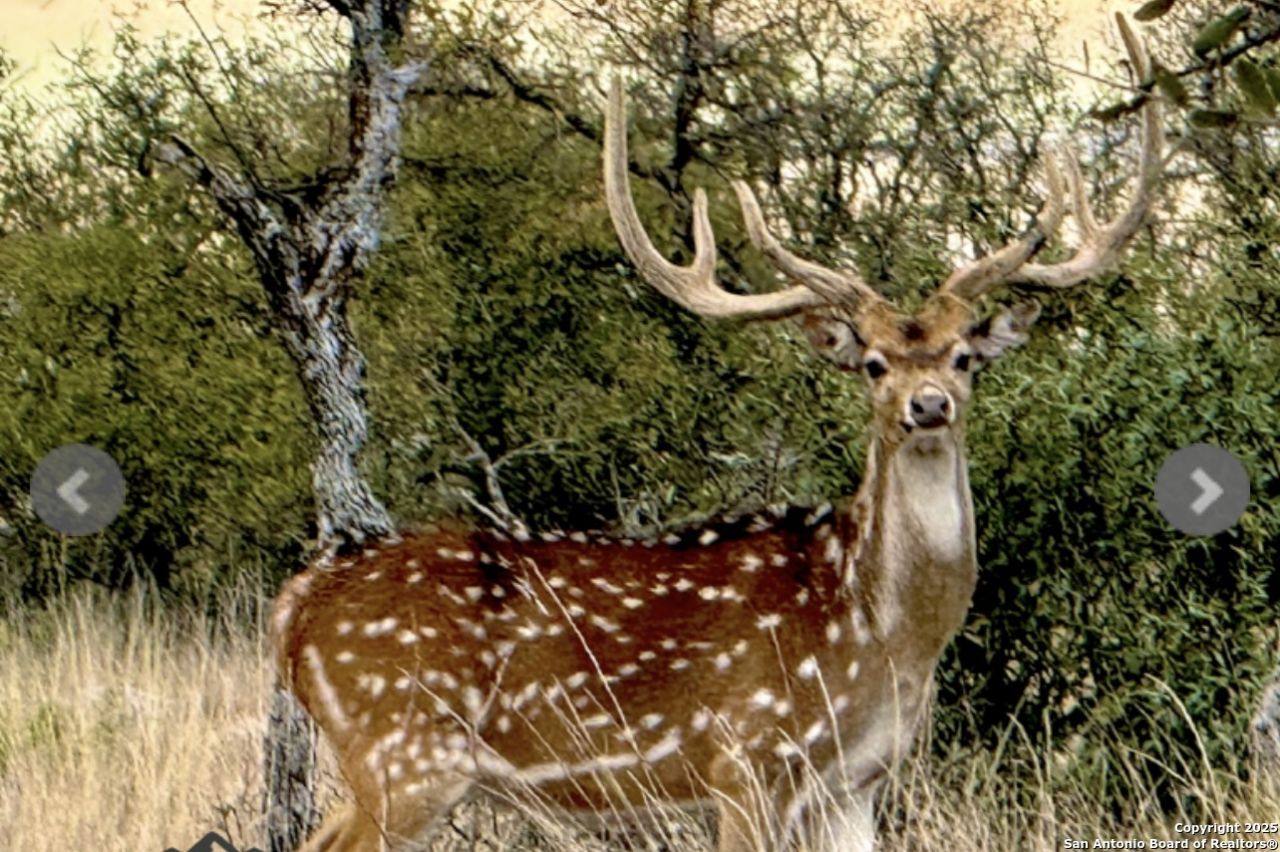A perfect getaway ranch with many possibilities whether it be a hunting facility, an exotic breeding ranch, a personal recreational ranch or corporate retreat. Fully furnished equipped with all furniture, appliances, and household items needed for comfortable living. The Texas sized lodge has a great floor plan with one bedroom downstairs and a large sleeping loft with en-suite upstairs with a total of 7 beds to sleep 9 people comfortably. Soaring ceilings in the great room provide plenty of space for your mounts! The main lodge has a wood burning fireplace, a full kitchen, dining area, 2 bedrooms, 2 baths, sleeping sunroom, and an outdoor fire pit. Plus, a bunk house that sleeps two and has a full bath. There is a barn, walk-in cooler, meat processing room, and 700-yard shooting range. A new propane Cummins generator that kicks on automatically in event of a power outage. A shipping container for additional storage with a solar powered vent and 20x24 carport were added. 5 newly built concrete dog kennels under-roof plus 2 addition concrete dog kennels. In addition, there are 2 high fence kennels. RECREATION/HUNTING: The 300+/- ac. Horn & Antler Ranch includes a magnificent herd of exotic animals, including Axis, Whitetail, Fallow, Addax, Oryx, Gemsbok, Blackbuck, Llamas, and guardian donkey. All indigenous Whitetails have been removed, and the ranch is stocked with small amount genetic Whitetail Deer. Two large hunting blinds, all season protein and corn feeders. Room dimensions are to Independently verified.