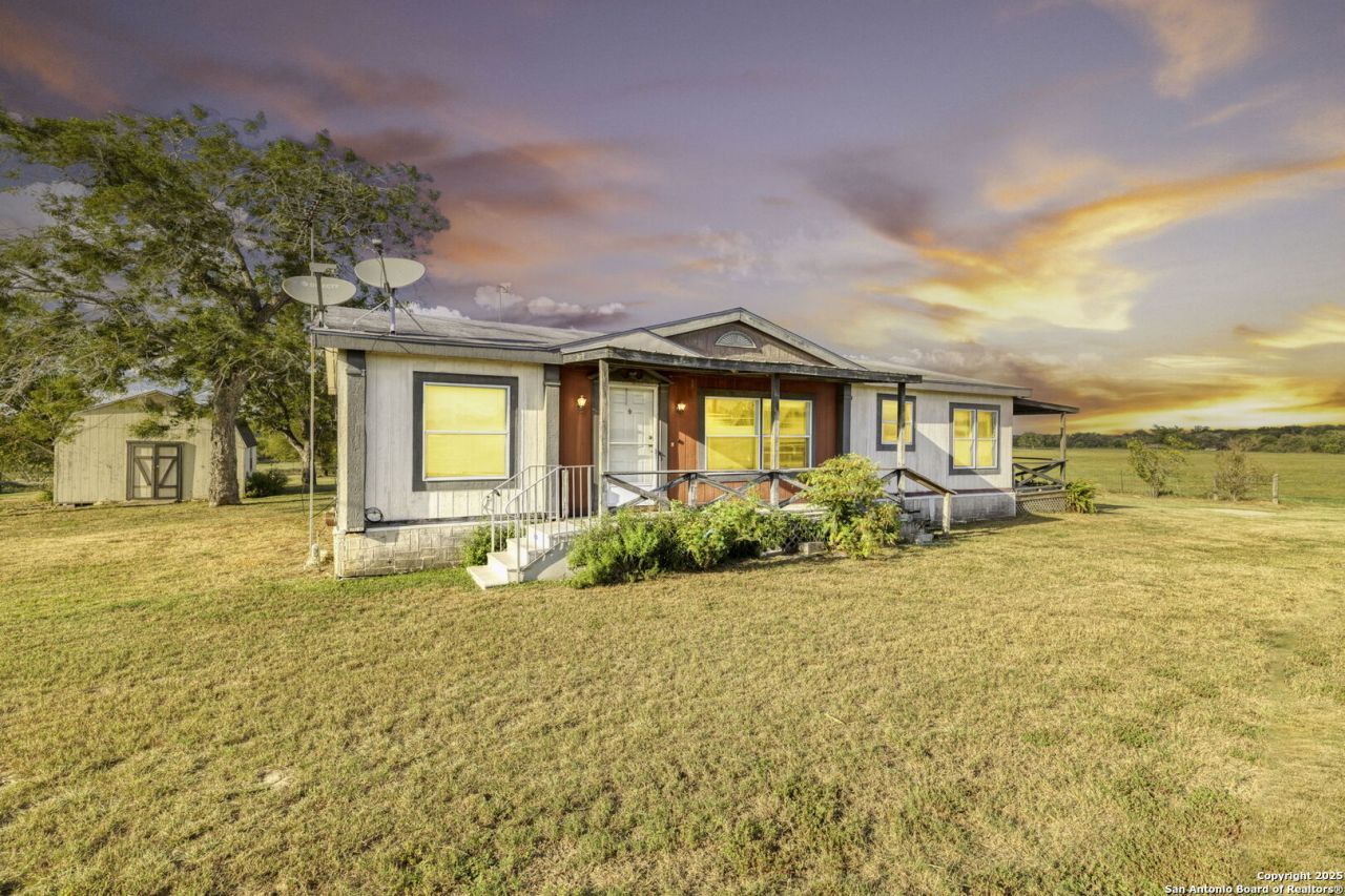 This exceptional 61.9-acre farm on FM 1322 offers endless possibilities and is perfectly suited for country living, farming, and recreational activities. The property has an agricultural exemption in place for low taxes and approximately 700 feet of road frontage with an Aqua Water line conveniently located at the road. Just 12 minutes from I-10 and 20 minutes from Lockhart, this property provides both accessibility and tranquility. The land is thoughtfully improved, with the front section cleared, level, and completely outside the flood plain. Current owners get several cuts a year depending on rainfall. Gorgeous 40+ foot live oaks and mesquite trees stud the back of the property, while a tank/pond offers an ideal setting for fishing or watering livestock. Abundant wildlife, including deer, turkey, and dove, makes this a hunters paradise. Improvements include a 40x20 enclosed workshop on a slab with electricity, a carport, and additional storage sheds. The property is fully fenced and cross-fenced, ready for livestock or farming operations. A 3-bedroom, 2-bathroom manufactured double-wide is move in ready--allowing you to make it your own country retreat. It has an open floor plan and two decks to enjoy. Whether youre seeking a working farm, recreational retreat, or peaceful rural homestead, this property delivers unmatched potential in a quiet and picturesque setting.