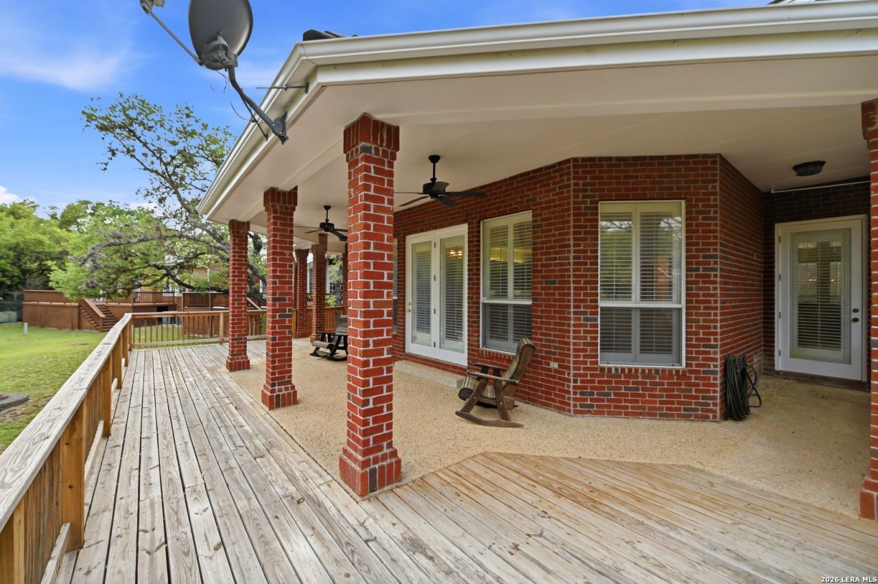 24-Hour Guard, Gated Community - Prestigious ELM CREEK. Very Private, Wooded, Secluded, CUL-DE-SAC, Centrally located, 10 minutes to airport. Big, Brick Home, Huge Back Patio Deck, Very Private, Perfect For Entertaining! Elegant! Lots of character, space, Master Bedroom DOWN, Big Walk-In Closets, Large Bath PLUS separate His/Hers Counters/Sinks/Closets! FEEL the large living and dining rooms, large eat-in kitchen, and how they all flow together. Huge 3,280sqft TOTAL LIVING SPACE includes 3 more bedrooms upstairs (TOTAL 4 Bedrooms), PLUS Media Room and a separate Loft. Oversized garage fits larger vehicles. Big, open kitchen, plenty of room for entertaining, fireplace, wood floors, high ceilings, WOW! Very centrally located, little to no traffic to deal with most any time of the day! Minutes to the airport, 410, I-10, 1604, San Pedro, North Star Mall, VA Hospital, 281, Blanco, Bitters, Medical Center, and Downtown are a mere 15-20 minute drive down Blanco. HURRY, WONT LAST