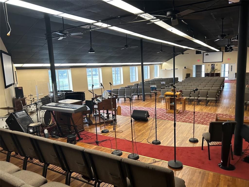 Beautiful Building. Ready for your church or business. 2 bathrooms upstairs include 2 showers in east bathroom. There is a private living quarters upstairs with private bath and kitchenette. Large spaces for gatherings. 2 kitchens. Private office downstairs with private bath with shower and kitchenette.Large sanctuary with seating of 300. Plenty of classrooms, offices, or bonus rooms. We also own 2 lots behind the building with a playground. Those lots are listed to be sold separately. Unless negotiated with the sale of the building.