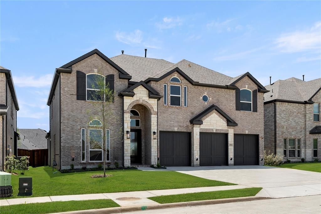 MLS# 20879069 - Built by First Texas Homes - Ready Now! ~ Step into luxury with this beautifully designed home, perfectly nestled in a quiet cul-de-sac. From the moment you arrive, you'll notice the upgraded brick and mortar, an elegant front door, and a grand raised family room ceiling for an open and airy feel. The fireplace extends to the ceiling, adding warmth and sophistication. Inside, enjoy the seamless flow of luxury vinyl plank flooring throughout the main living areas, including the entry, extended entry, study, flex room, family room, kitchen, nook, pantry, hallway, and primary suite. The curved staircase makes a statement with its wood starter step , while a floor plug in the family room adds convenience. The gourmet kitchen is a chef’s dream, featuring shaker-style cabinetry with extra storage up to the ceiling , gleaming quartz countertops , and a trio of stylish pendant lights. An extended dining room adds even more space for hosting memorable gatherings. The primary suite exudes elegance with framed mirrors and spa-like finishes, while the media room sets the mood with custom sconces. Step outside to a beautifully upgraded patio , perfect for outdoor entertaining. Every detail of this home has been carefully curated for style and function—schedule a tour today and experience it for yourself!