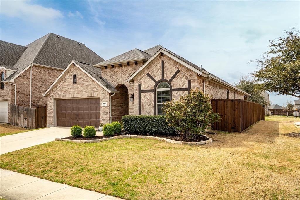 Meticulously maintained and move-in ready, this beautiful 3-bedroom home offers 1,952 square feet (appraiser verified) of thoughtfully designed living space. Situated on a premium corner lot backing to a peaceful greenbelt, the home is filled with natural light and features neutral finishes, crown molding, and no carpet throughout for easy maintenance.The large open living and dining areas with 12 foot ceilings create an inviting space for both everyday living and entertaining. At the heart of the home, the spacious kitchen showcases a large center island, abundant cabinetry, and seamless flow into the main living space. Step outside to a generous covered 25 by 28 foot patio overlooking the greenbelt — the perfect place to relax and enjoy scenic sunsets. The all-brick exterior, sprinkler system, and detailed upkeep add lasting value and curb appeal. The Tesla charging station in the garage is negotiable.Located in highly regarded Northwest ISD and within a master-planned community offering two pools, two playgrounds, a splash pad, multiple catch-and-release fishing lakes linked by miles of biking and walking trails, residents enjoy resort-style amenities right at home. Conveniently positioned near major highways, the Alliance Corridor, Charles Schwab, Fidelity, Tanger Outlets, Buc-ee’s, golf courses, farmers markets, and the historic, charming dining scene of Roanoke — with easy access to DFW Airport — this home truly combines comfort, convenience, and lifestyle.