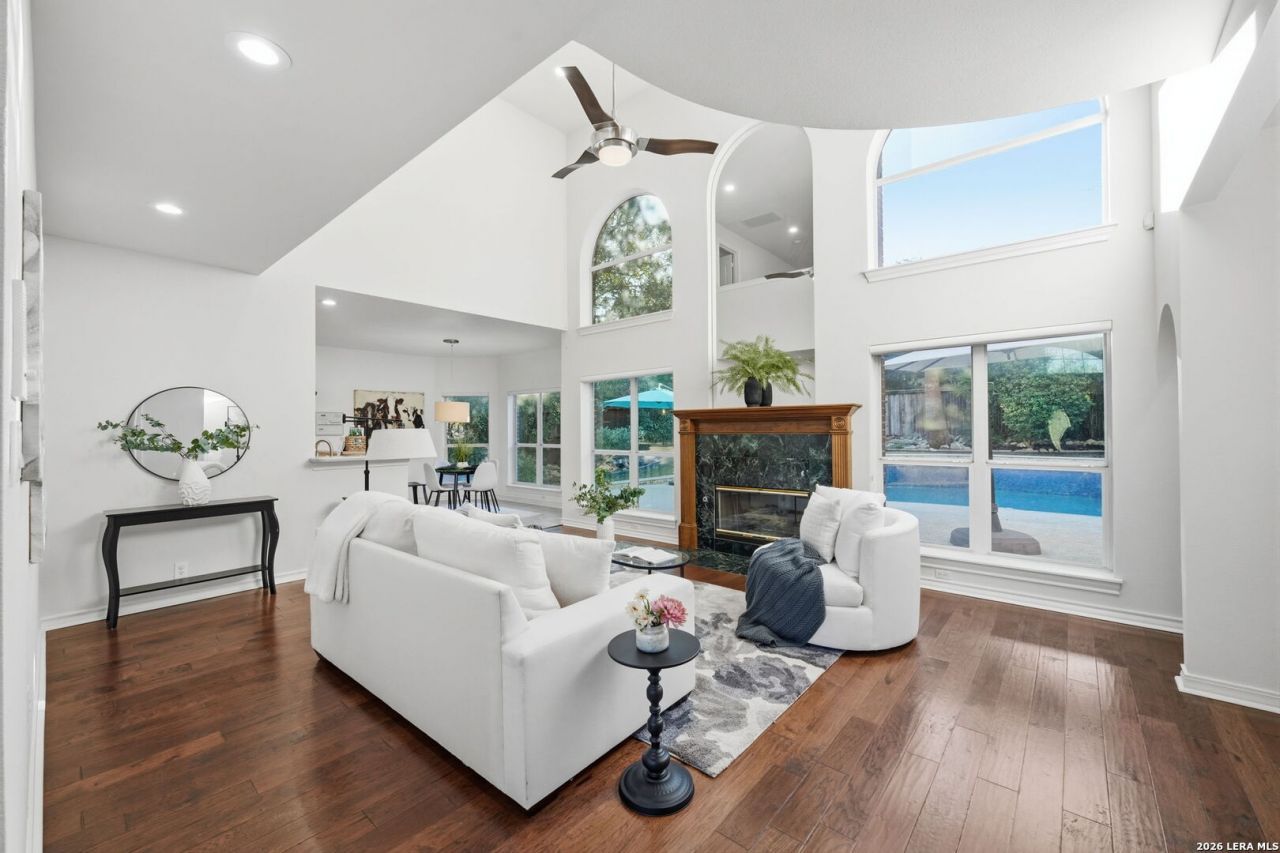 Located inside a guarded access community in the highly desirable 78248 corridor, 1619 Fawn Bluff offers nearly 3,000 square feet of thoughtfully updated living space in one of San Antonios most convenient locations. Positioned directly across from a park and zoned to NEISD, this two story home features 4 bedrooms, 3 full baths, a dedicated office, and an upstairs loft that provides flexibility for work, playroom, or additional living space. Recent improvements throughout the home create a clean, elevated feel. Hardwood stairs and upstairs flooring, new stair rails, updated lighting, fresh interior paint, and a refreshed secondary bath reflect careful attention to detail. Major system upgrades including a tankless water heater, HVAC UV sanitation system, updated furnaces, roof replacement, and water softener add meaningful long term value. The backyard is designed for both entertaining and everyday enjoyment with a resurfaced pool, refreshed Kool Deck, updated pool equipment, sprinkler system improvements, and recent fence repairs for added privacy. Location is a true highlight. With quick access to 1604, 281, I10, 410, and Wurzbach Parkway, commuting is seamless. Many daily destinations can be reached without relying on a major highway. Close proximity to USAA, Valero, the South Texas Medical Center, Methodist Healthcare, corporate campuses along 281 and I10, San Antonio International Airport, and downtown enhances both convenience and lifestyle. A rare opportunity to own in a small, guarded community where connectivity, privacy, and condition come together.