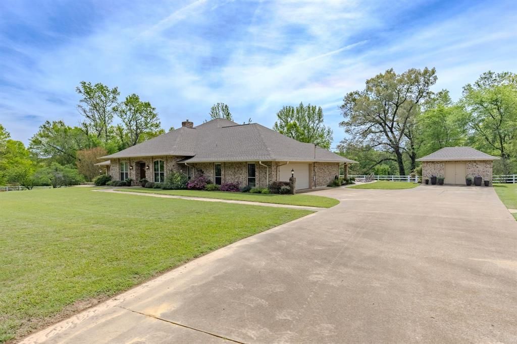 Picturesque East Texas luxury estate on 50 acres with large main house and massive custom shop with separate large studio apartment. This beautiful property has been lovingly owned by the same family for over 40 years and is ready to provide new memories to a new family. Main house is 4,123 sf with 5 bedrooms, 4 full bathrooms, two living areas, formal dining room, large game room, and so much more! Main floor includes 2 guest bedrooms and the primary bedroom suite which includes it's own separate office with built in bookshelves. Outside is the in ground pool with hot-tub and diving board, large garden area, and small storage building. The large shop includes the 1,050 sf studio apartment upstairs, two storage rooms, and large open area with enough space for a full sized motor-coach. Addition buildings include a 20x26 shop on slab with electric, 35x50 covered equipment storage, 50x60 hay barn, and a custom built green house on concrete slab with water and electric. The land itself features substantial amount of picket and pipe fencing, open hay pasture, wooded areas, and a creek running along the back edge.