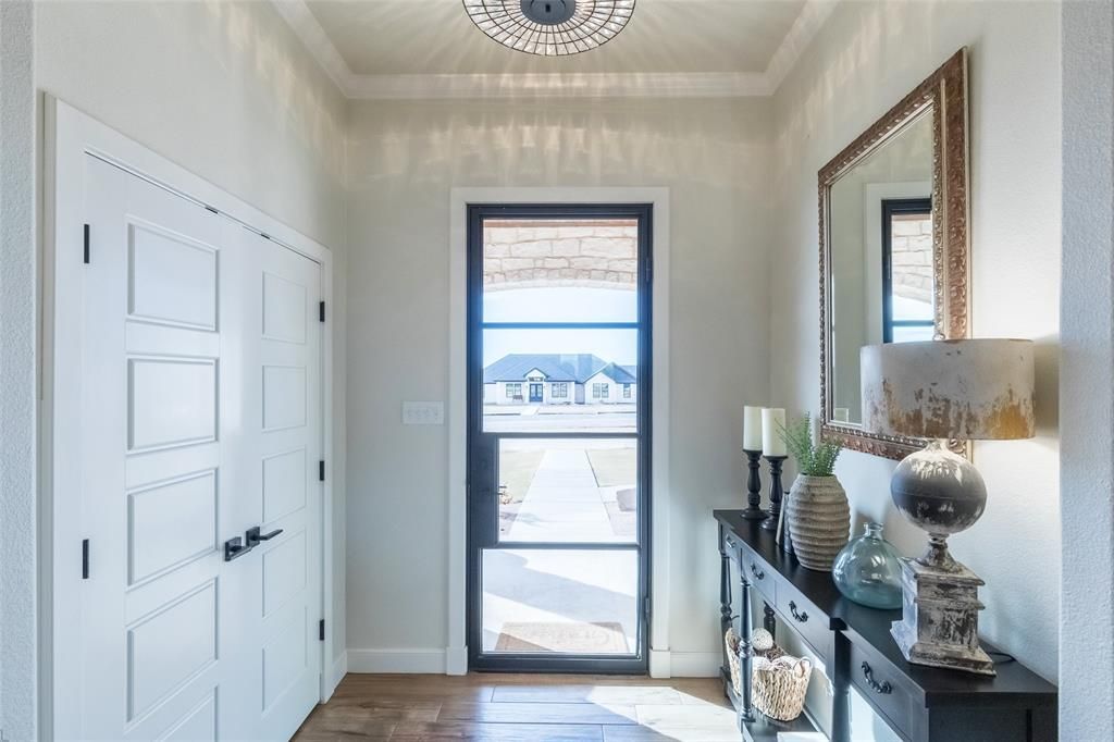 Luxury living meets refined comfort in this exceptional 4-bedroom, 3-bath residence set on 1.69 acres in the highly acclaimed **Jim Ned ISD**. Designed for both everyday living and elegant entertaining, the open-concept layout is enhanced by engineered hardwood flooring and walls of windows that fill the home with natural light.The living room is a true showpiece, featuring a striking full masonry fireplace with gas starter. The gourmet kitchen is outfitted with quartz countertops, a commercial-grade built-in refrigerator and freezer, gas cooktop, double ovens, and an oversized island ideal for gatherings. A thoughtfully designed butler’s pantry with ice maker adds both function and sophistication.The private primary suite offers direct access to the backyard retreat and a spa-inspired bath with tile flooring, soaking tub, tiled walk-in shower, dual vanities, and separate his-and-her closets. The guest wing includes three spacious bedrooms with walk-in closets; two share a Jack-and-Jill bathroom, while a third bath features a beautifully tiled shower. Outdoor living is elevated with meticulously landscaped front and back yards, a circular drive, gutters, and a privacy-fenced backyard oasis. Enjoy resort-style amenities including a swimming pool, hot tub, fire pit, and outdoor kitchen—perfect for hosting or unwinding in total privacy. Additional luxury features include a tankless propane water heater and spray foam insulation for superior energy efficiency and comfort.