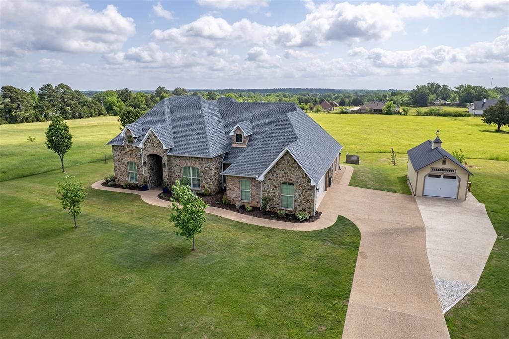 Immaculate custom home on 6.45 acres in Flint, offering the perfect blend of peaceful country living just minutes from all the conveniences of Tyler. This 3 bedroom, 2 bath home features a 2 car garage plus a shop and versatile flex space, ideal for a second living area, office, or formal dining. Designed with accessibility in mind, the home includes wheelchair accessible doorways and thoughtful layout throughout. Inside, you’ll find gorgeous finishes including travertine floors, tall ceilings, arched doorways, custom trim work, and beautiful ceiling treatments. The inviting family room opens seamlessly to the kitchen and features a gas log fireplace, creating a warm and welcoming atmosphere. The kitchen is well-appointed with granite countertops, island, stainless appliances, pantry, and custom cabinetry, along with plantation shutters on many of the windows. The spacious primary suite offers a double tray ceiling and an ensuite bath with separate vanities, soaking tub, separate shower, water closet, and walk-in closet. Two guest bedrooms share a full, hall bath with double vanity, and storage is abundant throughout. Updates include new interior paint in 2022, new oven 2024, new dishwasher 2026, and new HVAC2025 (both inside and out.) Additional highlights include a laundry room with sink and built-in desk or coffee bar area, extra concrete for additional parking, security gate, and a welcoming white rail fence with automatic entry. Enjoy the serene setting and beautiful acreage views from the covered back patio, all with no close neighbors for added privacy. Come See! Come Buy!