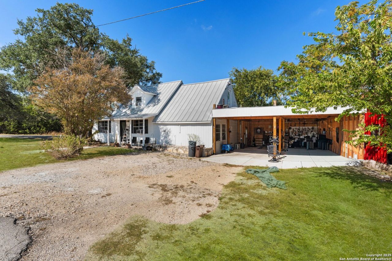 Experience Hill Country living at its finest in this charming 4-bedroom, 2.5-bath home on a level corner lot just minutes from Canyon Lake. This 1,700 sq ft residence showcases custom olive-gray wave textured walls, weathered wood-style laminate flooring, and a spacious kitchen with country white cabinetry and convenient corner shelving. The thoughtful floor plan includes a dedicated office space, while updated appliances, ceiling fans, and a covered porch enhance everyday comfort. Set on an 8,542 sq ft lot with mature trees where deer and peacocks roam freely, this unrestricted property offers carport parking, metal roof, territorial views, and the perfect blend of peaceful countryside living with easy access to recreational opportunities. Located on a paved county road with convenient routes to New Braunfels (30 minutes) and San Antonio (45 minutes via FM 306), this traditional Hill Country home delivers both serenity and convenience without HOA restrictions.
