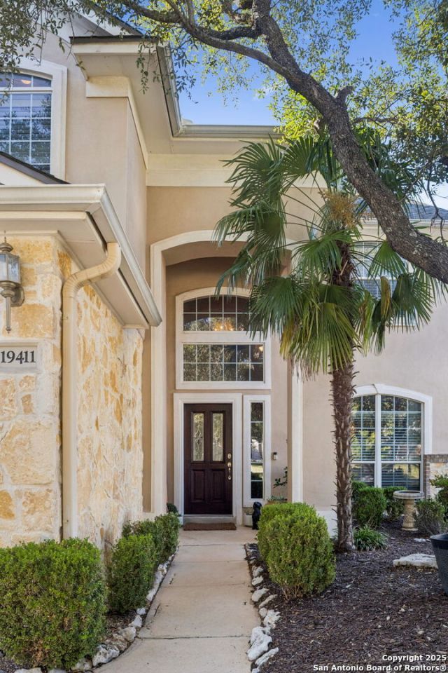 Welcome to 19411 Sweet Oak, a beautifully updated 4-bedroom, 3-bath home located in the highly desirable Oaks at Sonterra. This stunning residence offers 2,390 sq. ft. of living space on a 0.23-acre lot, featuring soaring 19-foot ceilings and large windows that fill the living room with natural light. The spacious kitchen showcases quartz countertops, a large island, and an open layout that flows seamlessly into the living room-perfect for entertaining or casual family gatherings. A cozy wood burning fireplace anchors the living area, creating a warm and inviting atmosphere. The primary suite serves as a private retreat with a spa-like ensuite bath featuring a garden tub, separate shower, dual vanities, and a walk-in closet. Additional bedrooms offer flexibility for family, guests, or a home office. Step outside to enjoy a peaceful backyard oasis, ideal for relaxing or outdoor dining. Located in the heart of Stone Oak, this home provides access to top-rated schools, shopping, dining, and a vibrant community. Residents enjoy proximity to a country club offering golf, tennis, dining, and social events-making everyday living feel like a resort experience.
