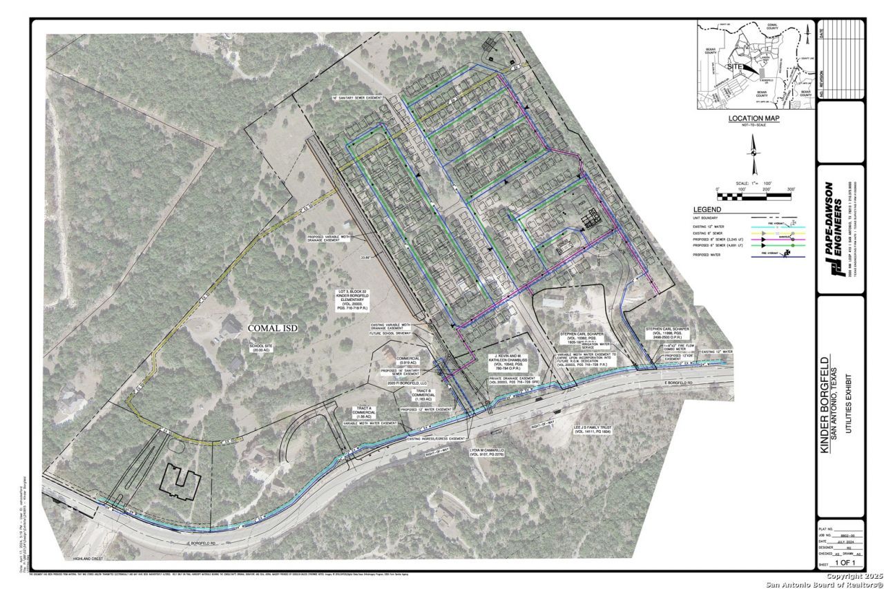 Platted / SS (being installed in next 6 months) / water. Incredible commercial oppty on Borgfeld Rd at the gateway to the Kinder Ranch Master Planned Community. Drone being uploaded soon. Over 1400 SF homes in this submarket. BTR community just closed on the 27 acres behind this tract. Submitted and approved TIA calls or traffic signal at the east ingress / egress drive. Plat is attached. Buyer to conduct all necessary due diligence.