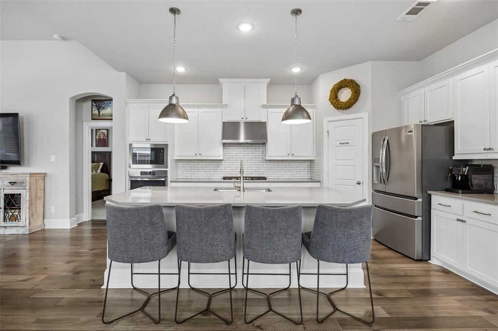 Imagine ending your day on your front porch with a front-row seat to unobstructed views of the stars, a rare luxury that defines this exceptional home in the heart of the Walsh community. Perfectly situated for the ultimate neighborhood lifestyle, this property offers the convenience of being a short walk from Walsh Elementary, making school commutes and evening community events a breeze. Its central location puts you within easy reach of all the neighborhood parks, while the unique corner lot positioning ensures you aren't squeezed between two houses, providing an incredible sense of openness and privacy.Inside, this David Weekley Pin Oak floor plan lives as beautifully as it looks, featuring four bedrooms and three full bathrooms. The layout is designed for modern living, boasting a dedicated home office for a quiet workspace and a private media room perfect for movie nights or big games. Combining a premium location with one of David Weekley’s most popular designs, this home offers a rare opportunity to enjoy the very best of Walsh living.Included with your HOA dues is high-speed internet, front yard maintenance and access to everything Walsh has to offer. Walsh residents enjoy access to miles of trails, parks, playgrounds, multiple resort-style pools, a fitness center with weekly classes and drop-in daycare, makerspace with wood working shop and 3D printer, dog parks, sport courts including basketball, pickleball and tennis, two stocked ponds, planned community events and an on-site elementary school, along with convenient access to Fort Worth, Aledo and Weatherford.