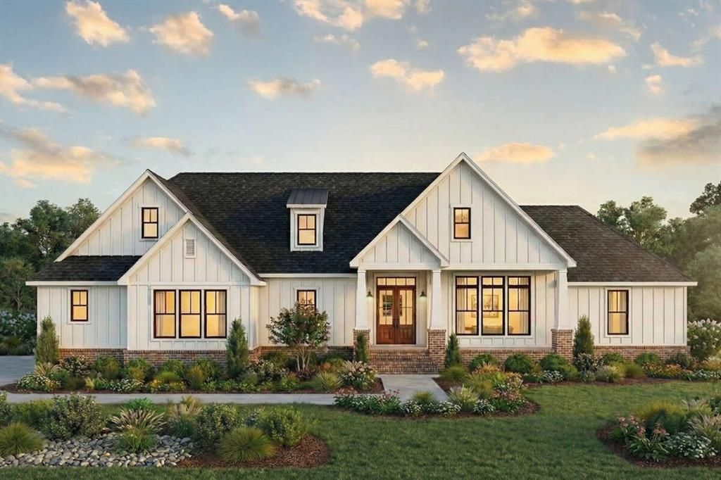 Stunning single-story Modern Farmhouse with a side entry 3 CAR GARAGE! Situated on a beautiful lot with mature oak trees, this thoughtfully designed home offers 3 bedrooms, 2.5 baths, and a bright open-concept layout perfect for everyday living and entertaining. The spacious great room features 12 foot ceilings, a wood burning fireplace, and large windows that fill the home with natural light. The kitchen is built for gathering with a large center island, breakfast bar, GAS COOKTOP, walk in pantry, and generous prep space. The split bedroom floor plan provides privacy, with an impressive owner’s suite featuring a 10 foot tray ceiling, spa style bath with freestanding tub and separate shower, and a large walk in closet with direct access to the laundry room. Secondary bedrooms offer walk-in closets and share a hall bath. Enjoy outdoor living on the covered back porch with an OUTDOOR KITCHEN and OUTDOOR FIREPLACE, perfect for relaxing or entertaining year round. Energy efficient featurs include spray foam insulation and a tankless water heater! Additional highlights include landscape package with irrigation, builder warranty, plus 2 10 Home StrucSure Warranty. Pictures are drawing images from floorplan, MORE photos will be updated as construction progresses. Modifications can occur. Estimated completion June 2026