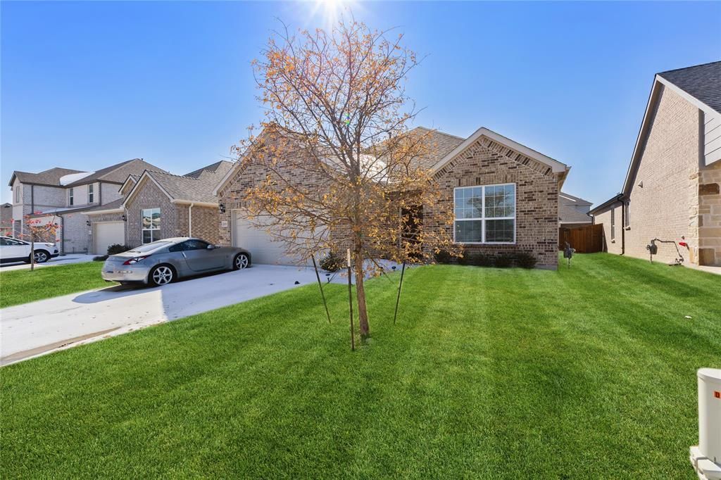 Beautiful 3-bedroom, 2-bath home located in the highly sought-after Anna Town Square community. Hardwood floors flow throughout the main living areas, with cozy carpeted bedrooms for added comfort. The kitchen features a gas range, center island, walk-in pantry, and opens seamlessly to the living and dining areas—perfect for entertaining.The spacious primary suite offers a thoughtfully designed walk-in closet, a deep soaking tub, and a separate shower. Enjoy the open floor plan and step outside to relax on the patio overlooking the generous backyard.Community amenities include a resort-style pool ideal for both play and relaxation, multiple jogging trails, and an elementary school conveniently located within walking or golf cart distance.