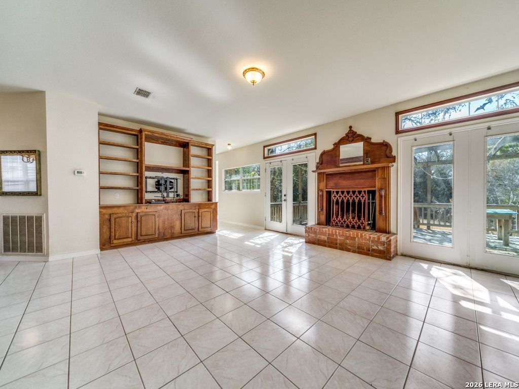 Located just outside of Boerne, this 5 acre property features a two-story home built in 1997 offering 2,644 square feet with a practical layout, mature surroundings, and the opportunity to update and add value. With three bedrooms, two full baths, and two half baths, the floor plan provides flexibility for everyday living and long-term usability. Two bedrooms are positioned on the first level, supporting accessibility and convenience. The main living area features built-in cabinetry, a fireplace, and easy access to the outdoor deck, creating a natural gathering space. The kitchen includes generous cabinet storage, functional work areas, and an adjacent breakfast space with natural light. Tile flooring runs through the primary living areas for durability and ease of maintenance. The primary suite offers a spacious footprint with room to modernize to todays preferences. Secondary bedrooms are well sized, and the layout supports separation between living and private spaces. A dedicated laundry room and additional storage areas contribute to everyday functionality. Outdoors, the property includes mature trees, open yard space, and a deck that extends the living area. A detached shed/barn structure provides additional storage or hobby space. The setting offers privacy and a more rural feel while remaining accessible to Boerne amenities. This property is being sold as is and presents a straightforward opportunity for buyers who recognize the benefit of a solid structure and are prepared to make cosmetic and design updates over time. The foundation, layout, and setting create a strong starting point for personalization, and long-term investment.