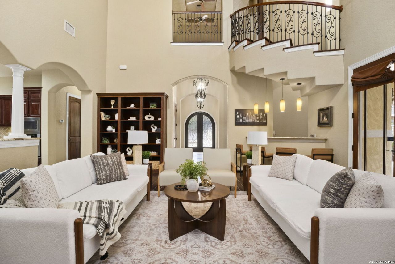 MULTIPLE OFFERS RECEIVED, BEST AND FINAL DUE 3/6 AT 12PM **OPEN HOUSE SAT (3/7) 2PM-4PM** A rare Tuscan-inspired gem in Castle Hills, 213 Chattington is gracefully set at the end of a cul-de-sac on a sprawling half-acre lot. The elegant circular drive leads you to a residence that feels both timeless and intentional. Inside, soaring ceilings, sweeping curved arches, and bespoke built-ins create an atmosphere of grandeur, while striking steel detailing on the staircase and front door adds an artistic, sculptural touch that feels truly custom. The thoughtfully designed layout unfolds with two refined living spaces, including a formal living room anchored by a fireplace alongside a sophisticated formal dining room, a chic wet bar, and a versatile upstairs loft that can transform effortlessly into a playroom, office, or secondary lounge. All four bedrooms are conveniently situated on the main level, offering seamless single-story living without sacrificing space or elegance. The primary suite is a serene sanctuary, featuring an intimate sitting nook and a spa-inspired bathroom designed for ultimate indulgence. A luxurious soaking tub pairs with a walk-in dual shower complete with a rainfall showerhead and body blasters, creating a private spa-like retreat.Beyond the doors lies the crown jewel of the property: a stunning backyard oasis centered around a shimmering pool. Surrounded by lush privacy and ample side yard space, this outdoor retreat is as functional as it is beautiful. Enjoy outdoor living on the covered patio, with an adjacent space already pre-wired for a future outdoor kitchen - ideal for dining and entertaining. Blending Mediterranean charm, architectural sophistication, and resort-style living, 213 Chattington is more than a home - it is a statement.