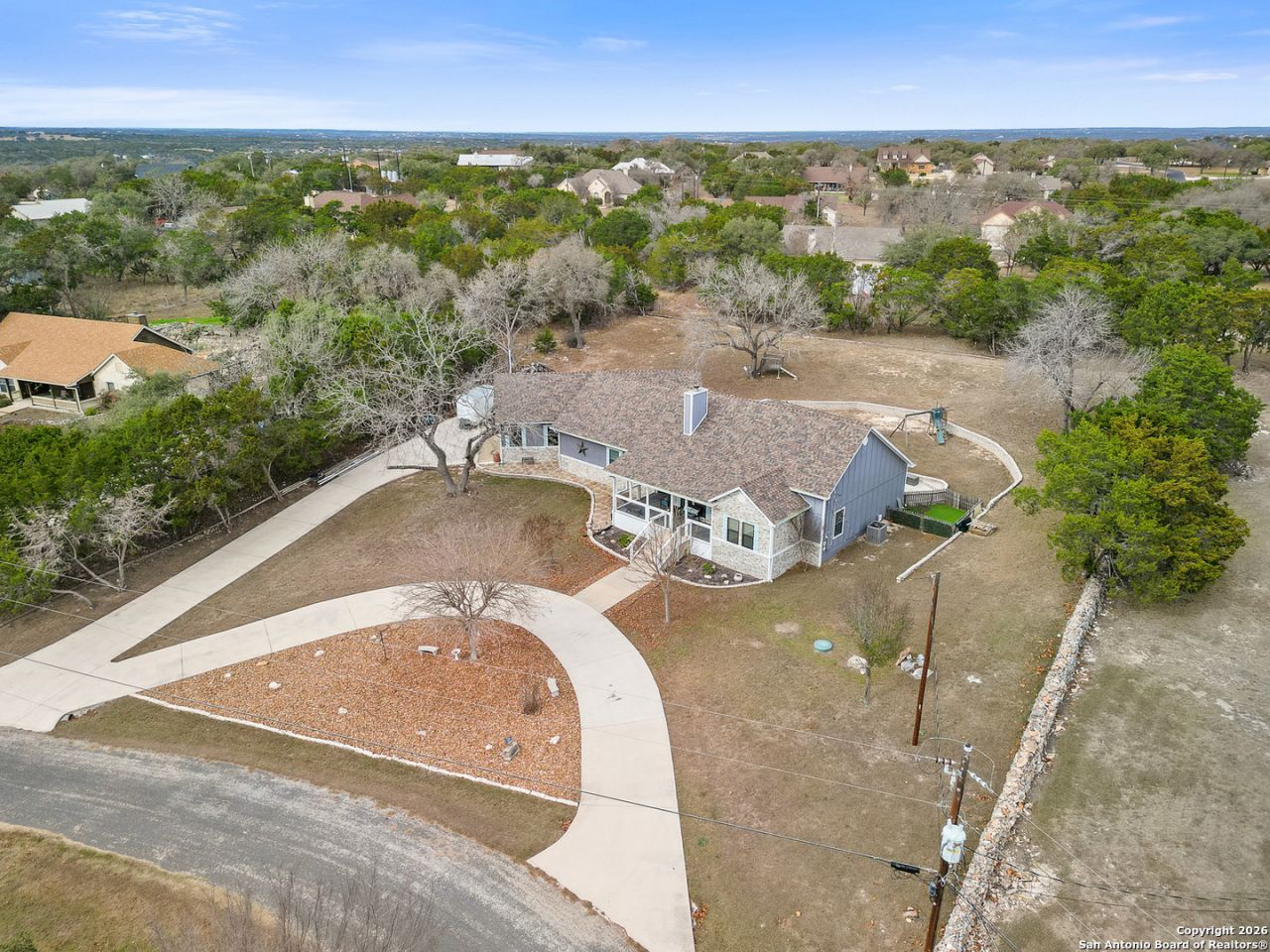 Well designed 4- bedroom, 3-bath home with an oversized garage featuring a SHOP area! This Hill Country home is situated on .81 acres in the desirable Highlands Ranch neighborhood. No city taxes! The living area features a beautiful stone fireplace paired with new LVP flooring. High ceilings throughout create an open, airy atmosphere. Off the living room, French doors lead into a flexible space perfect for a guest room or home office. Wonderful entertainment areas off the front and back porch! Oversized garage with a shop area! This home is one youll want to see in person.