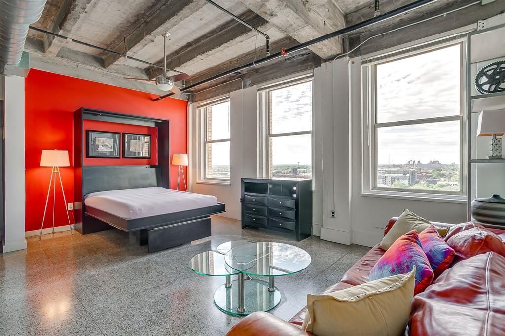 Amazing Views! Historic T & P Passenger Terminal made into condos! This studio is fabulous! They relocated I-30 placing this property in Downtown Fort Worth! Walk everywhere! Restaurants, bars, shopping, Downtown, South Main Village! W Magnolia! Churches! Historic buildings and parks. Molly the Trolley is right across Lancaster. All freeways are easily accessible! Right out back is a commuter rail station! Tex Rail and TRE! This fabulously furnished studio is ready for occupancy! Furniture is optional. Only floor plan that has a true island kitchen. The view is higher than the 11th floor due to levels below not being counted! Original poured-in-place terrazzo floors! Three huge windows! Built-in wall bed! Walk in closet! All appliances stay! Tenant gets a cable and internet package included in lease. Tenant chooses electric company. All amenities included, fitness, business center, club room and more. No HOA dues for tenant. See today! Great energy here! Classy! Contemporary! Cool! Convenient! Wall bad is a queen sized built in and converts to a desk as well! Bring your own mattress. Great for students at Texas A&M Law School or TCU!! Some furnishings can stay or go depending on the need of the tenant.