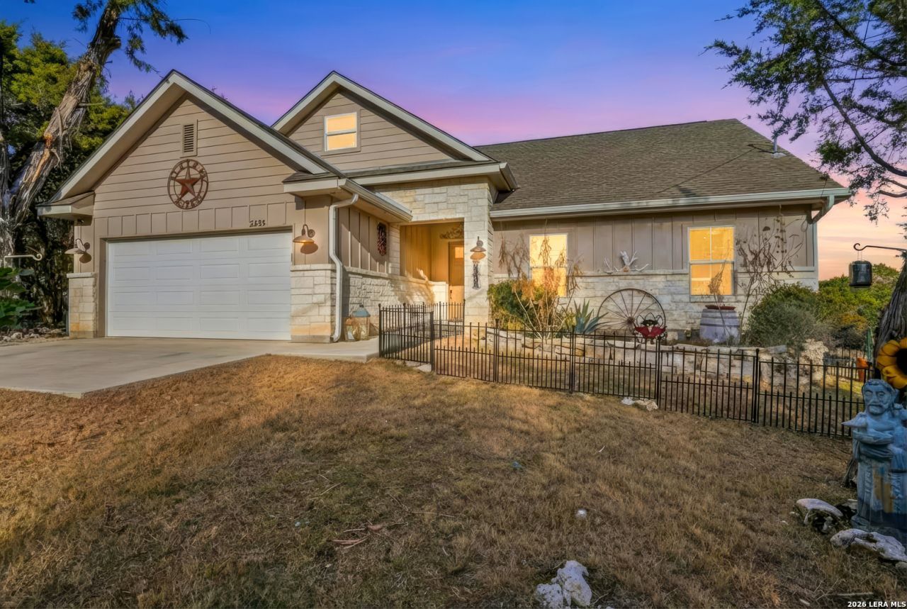 Experience country-like privacy and lifestyle combined with managed neighborhood conveniences in Spring Branch with this stunning home situated on a quiet community greenbelt. A circular drive welcomes you to a home filled with natural light from abundant windows throughout. Inside, high vaulted ceilings with recessed lighting create an open, airy feel. The kitchen features a large island with marble countertops, a breakfast bar, stainless steel appliances, and plenty of cabinet space, perfect for culinary enthusiasts. Beautiful ceramic tile flows throughout the main living areas, seamlessly connecting spaces. An enclosed Florida room with wood ceilings provides a peaceful retreat and opens to the fenced backyard, which offers mature landscaping, a separate dog run/kennel, and a view of the greenbelt ideal for outdoor entertaining or relaxing in privacy. The primary suite offers an ensuite with an oversized tiled shower with bench, and a dual vanity with marble countertops. Upstairs, an extra bedroom and gallery style hallway provide flexible space ideal for guests, an office, or a quiet retreat. Located just a short drive from Canyon Lake and convenient shopping in Spring Branch, this home blends comfortable modern living with access to outdoor recreation and community amenities such as a swimming pool, tennis court, fishing pond, and kid- and pet-friendly park within walking distance of the house.