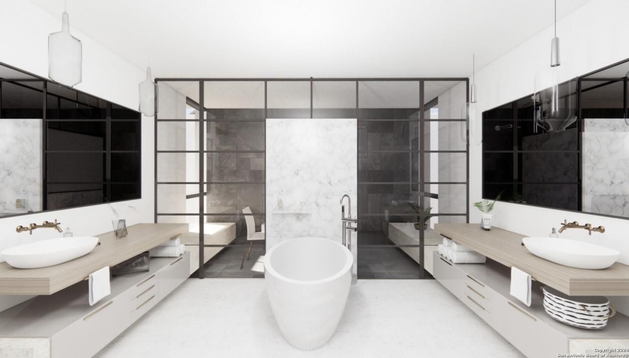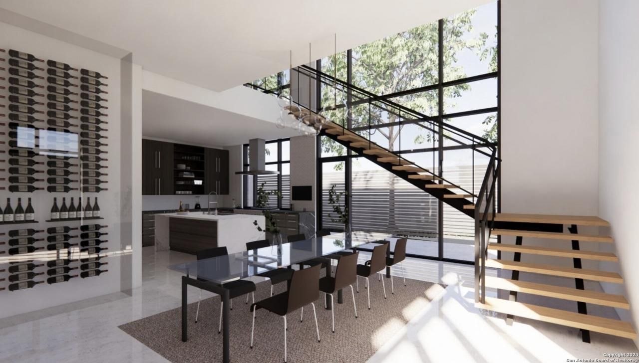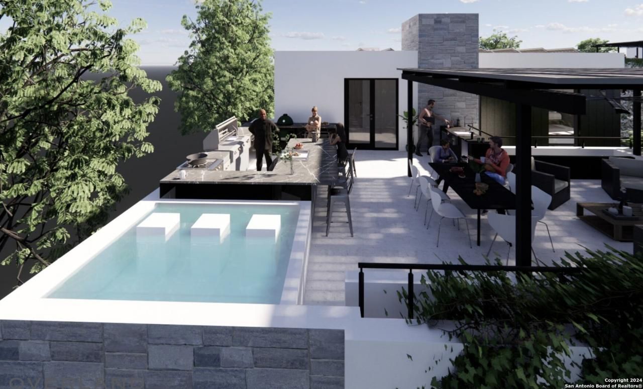 Designed by architect Overland Partners and built by Starnes Development, this modern residence represents the next generation of sustainable luxury living within a six-home enclave in San Antonio (Alamo Heights Independent School District / AHISD). Currently under construction, the home offers the opportunity for a buyer to participate in final interior selections as negotiated with the builder. Estimated completion is end of 2025 or early 2026. Spanning three levels, each served by a private elevator, the layout delivers open-concept living on the main floor and private bedroom suites on the second and third floors. The third-floor lounge opens to an east-facing rooftop terrace equipped with an outdoor kitchen, fireplace, and expansive city views. The communitys gate and exterior fencing are planned, ensuring both privacy and lock-and-leave convenience. KITCHEN & LIVING Warm-toned custom cabinetry anchors a spacious gourmet kitchen with a large working island and high-end appliances-ideal for those who love to cook or entertain. Designer tile and lighting extend throughout, complemented by beautiful hardwood floors and floor-to-ceiling windows that fill the space with natural light. A custom iron staircase serves as a sculptural focal point on the first floor. Functional storage includes a large first-floor utility room and walk-in pantry off the garage entry, keeping essentials neatly out of view. PRIMARY SUITE The luxurious primary retreat features a closet with four walls of built-in cabinetry and a center island, offering exceptional storage and a true dressing-room experience. The spa-inspired bath includes an oversized walk-through shower, freestanding soaking tub, and dual vanities, all enhanced by gold-toned designer lighting for a warm, modern finish. OUTDOOR LIVING & UPGRADES The third-floor terrace captures east-facing sunrise light and evening skyline glow-a perfect setting for entertaining or relaxing under the stars. The home includes solar-ready infrastructure and an option for a pool upgrade, offering either a rooftop plunge/spool concept or ample yard space for an in-ground pool (buyer to verify and contract). PROXIMITY HIGHLIGHTS (approx.) Soluna Cocina Mexicana - 0.3 mi / 6 min walk Braza Brava Pizzeria Napoletana - 0.3 mi / 6 min walk Revolucion Coffee + Juice - 0.3 mi / 6 min walk Oak Park H-E-B - 0.3 mi / 6 min walk Starbucks (N New Braunfels & Nacogdoches) - 0.4 mi / 7 min walk HOTWORX Alamo Heights - 1.1 mi / 4 min drive Orangetheory Fitness - 1.5 mi / 5 min drive COREFIT Pilates & Barre - 1.6 mi / 6 min drive Methodist ER - Alamo Heights (Quarry) - 2.0 mi / 6 min drive Alamo Heights Dog Park - 2.2 mi / 7 min drive Brackenridge Park - 3.9 mi / 9 min drive San Antonio Zoo - 4.8 mi / 10 min drive Pearl District - 6.3 mi / 14 min drive Downtown San Antonio / River Walk - 6.2 mi / 15 min drive San Antonio International Airport (SAT) - 1.8 mi / 5 min drive Architectural