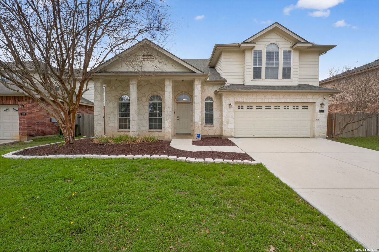 Spacious and well-maintained home located on a quiet cul-de-sac in Cibolo, offering over 3,000 square feet of comfortable living space! This 4-bedroom, 3.5-bath home welcomes you with a large front porch and an inviting entryway featuring tall ceilings and an open, airy feel. Abundant windows throughout fill the home with natural light. Inside youll find new carpet throughout and multiple living and entertaining spaces including three living areas, a formal dining room, and a breakfast area. The kitchen offers ample cabinet and counter space, making it perfect for cooking and hosting. The oversized primary suite is truly impressive, featuring a tray ceiling and a spacious en-suite bathroom with dual vanities, a garden tub, and a separate shower. Upstairs youll find three generously sized secondary bedrooms, two full bathrooms, and a huge bonus room that offers endless possibilities - theater room, game room, playroom, or additional living space. Enjoy the oversized backyard complete with a large covered patio and extended deck, ideal for relaxing or entertaining. Additional features include tilt-in windows for easy cleaning, a roof less than two years old, and solar panels for energy efficiency and long-term savings. Located in a desirable community with amenities including a pool, clubhouse, and playground. Conveniently located within SCUCISD and zoned to Samuel Clemens High School. Close to downtown Cibolo plus local shops, restaurants & Randolph Air Force Base. This home offers the space, layout, and location buyers are looking for!