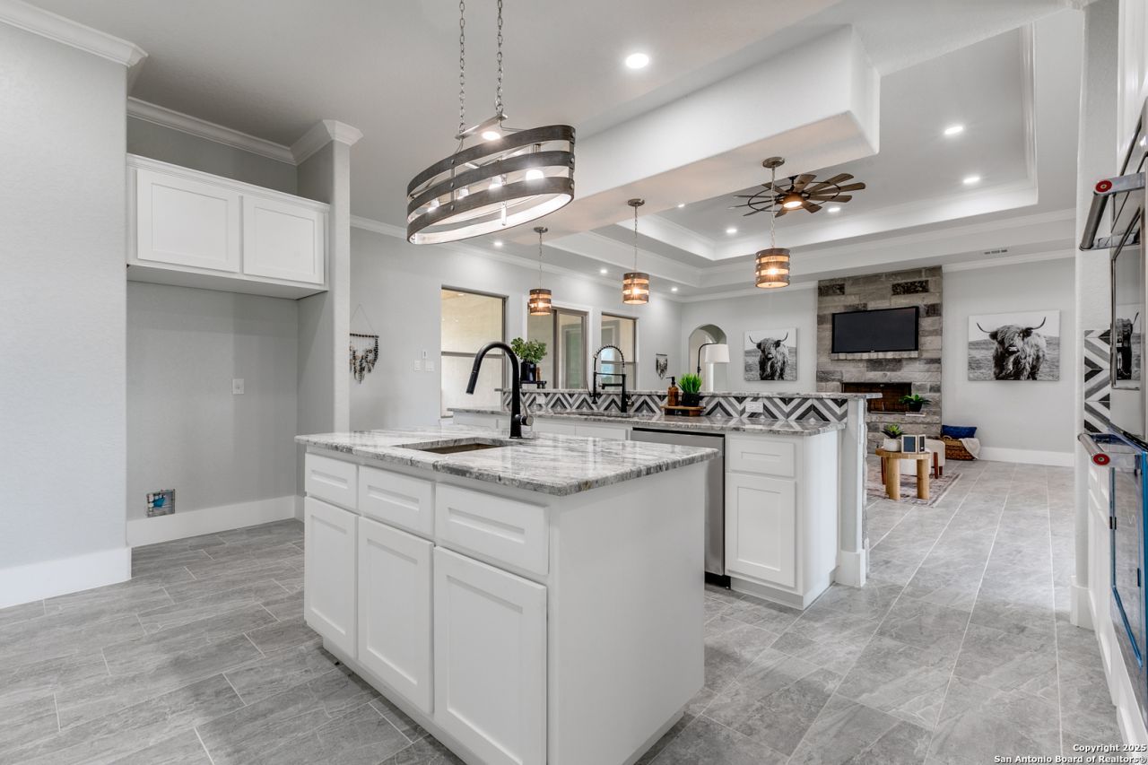 Stunning Mediterranean-Style Home on 1 Acre in Gated Paraiso Community This stunning one-story Mediterranean-style home sits on a full acre in the private, gated Paraiso community-a serene enclave of just 15 homes offering the perfect blend of country living and modern luxury. Designed with a contemporary open-concept layout, the spacious living and dining areas flow seamlessly into a dream kitchen featuring custom cabinetry, two oversized islands, designer lighting, and impeccable tile and countertop finishes-ideal for entertaining or family gatherings. This home offers 5 bedrooms, 4 baths, an office, game room, and exercise room, providing flexibility for every lifestyle. Step outside to an entertainers paradise with a large covered patio, stone fireplace, outdoor kitchen, and half bath for guests. The 3-car garage and expansive yard offer endless opportunities for customization. Built with energy-efficient spray foam insulation, this home combines beauty, comfort, and sustainability. Centrally located with easy access to downtown Castroville (under 4 miles), Potranco Rd. (2 miles north), and just minutes from the new Microsoft plant at Potranco and 471. From downtown Castroville, enjoy a direct route to Lackland AFB. This is truly a must-see home that offers the best of both worlds-luxury and tranquility, all within reach of city conveniences.