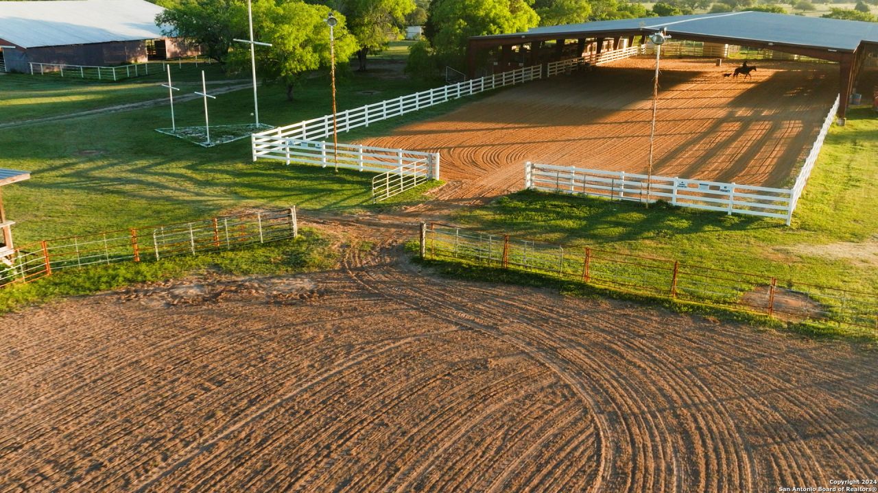 Welcome to your exclusive horse ranch retreat sprawled across 100 +/- acres alongside the picturesque Guadalupe River. Delight in the panoramic vistas of undulating fields and majestic oak trees, embracing the tranquil allure of this unparalleled estate. Designed with equestrian aficionados in mind, revel in the amenities including an indoor riding arena, two outdoor arenas, covered stalls equipped with automatic waterers, loafing sheds, and wash racks. Additionally, a spacious 40x60 shop with water and electric utilities awaits your projects. This versatile income-generating property boasts three residences suitable for short-term rentals, employee housing, or a thriving cattle or equine enterprise. The main residence offers multiple living areas, dedicated office space, three bedrooms, and two baths, featuring a pool as well. Immerse yourself in the abundant Texas wildlife while enjoying access to a stocked pond along the riverfront, complemented by four water wells, one of which is solar-powered. Escape to this idyllic horse sanctuary.