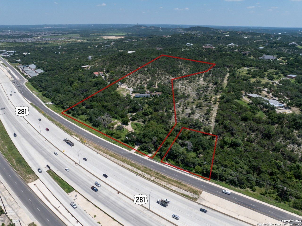 2 lots, approximately +/- 1.07 acres and +/- 7.69 acres on 281 N. Located just north of the new Santikos development, this property offers excellent visibility and high traffic counts, making it an ideal site for retail, office, or mixed-use development. The surrounding area is rapidly growing, with significant new retail developments to the south and Alamo Colleges acquiring land on the opposite side of the highway, further enhancing the commercial appeal and investment potential of this location.